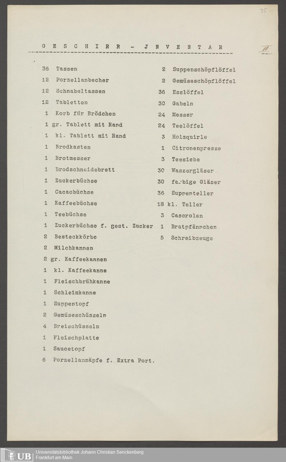 B 5 Dr. Senckenbergische Stiftung, 210 - Wäsche und Geschirrinventare des Krankenhauses und der Pfründner