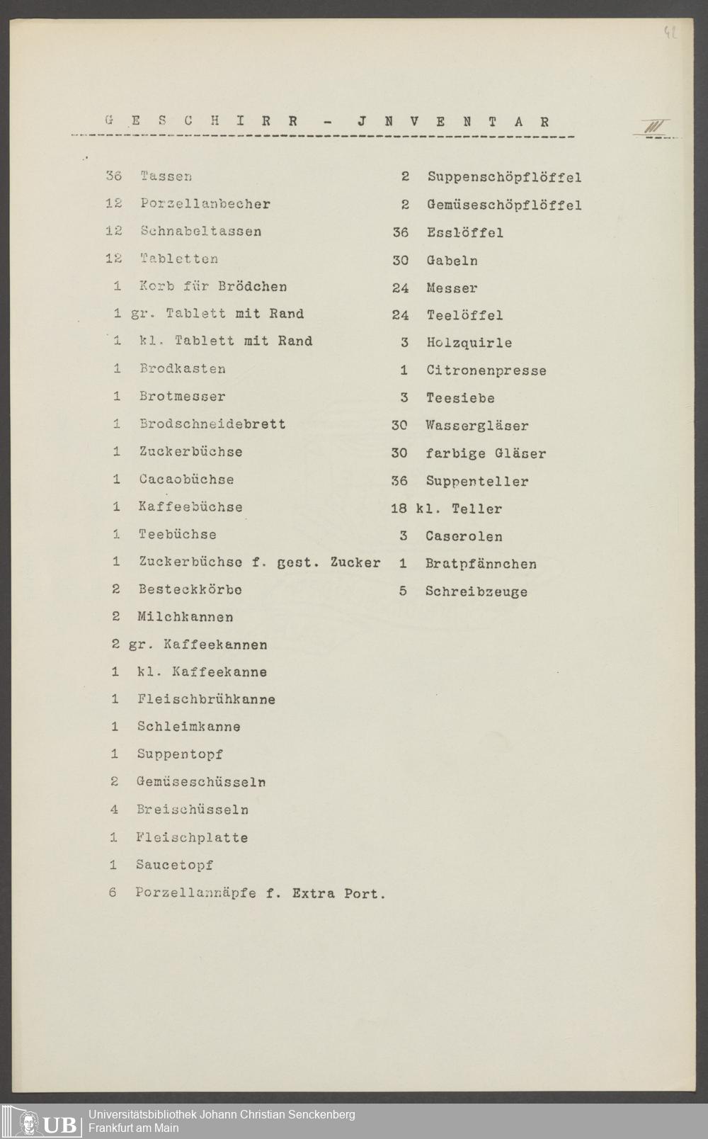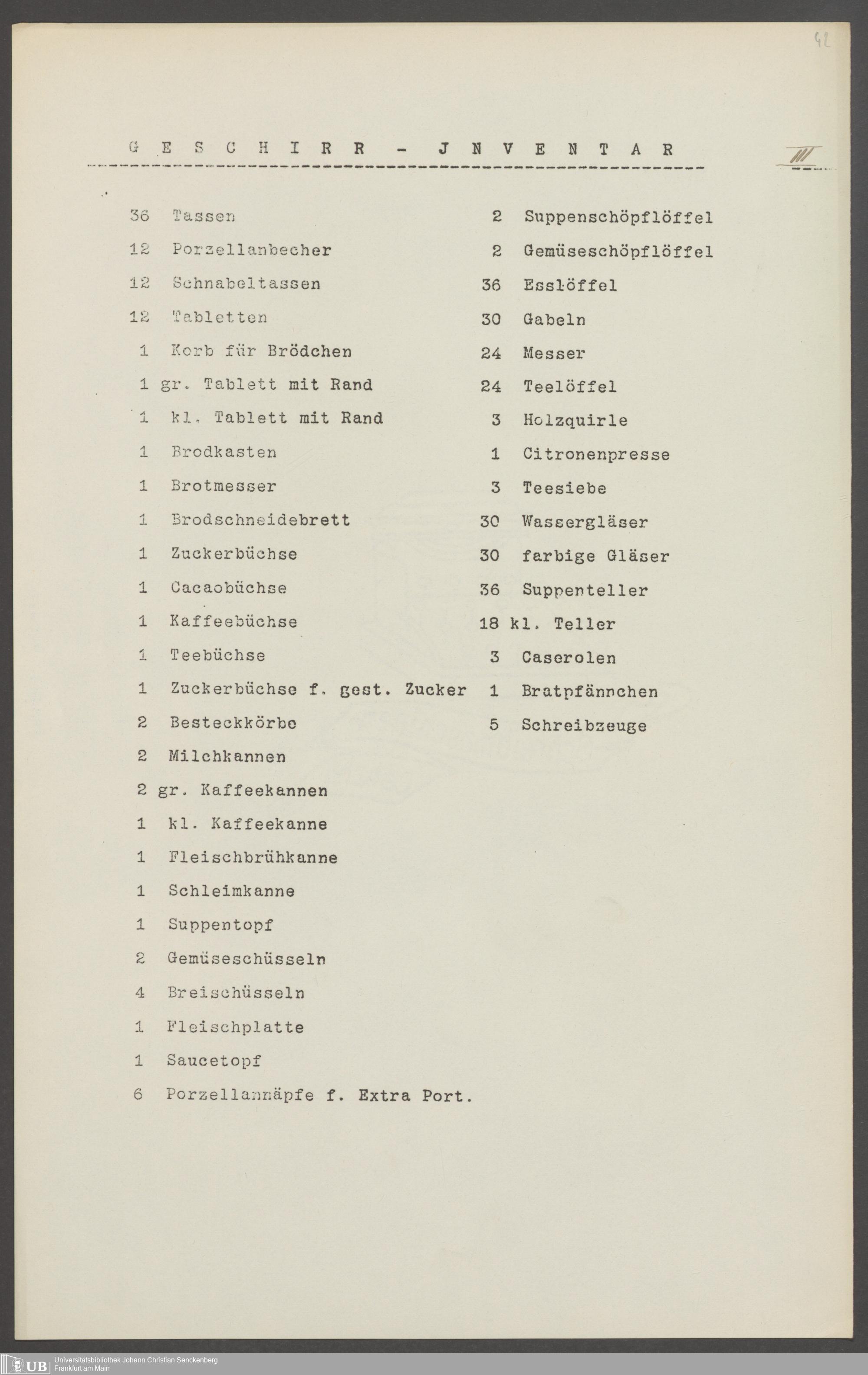 B 5 Dr. Senckenbergische Stiftung, 210 - Wäsche und Geschirrinventare des Krankenhauses und der Pfründner