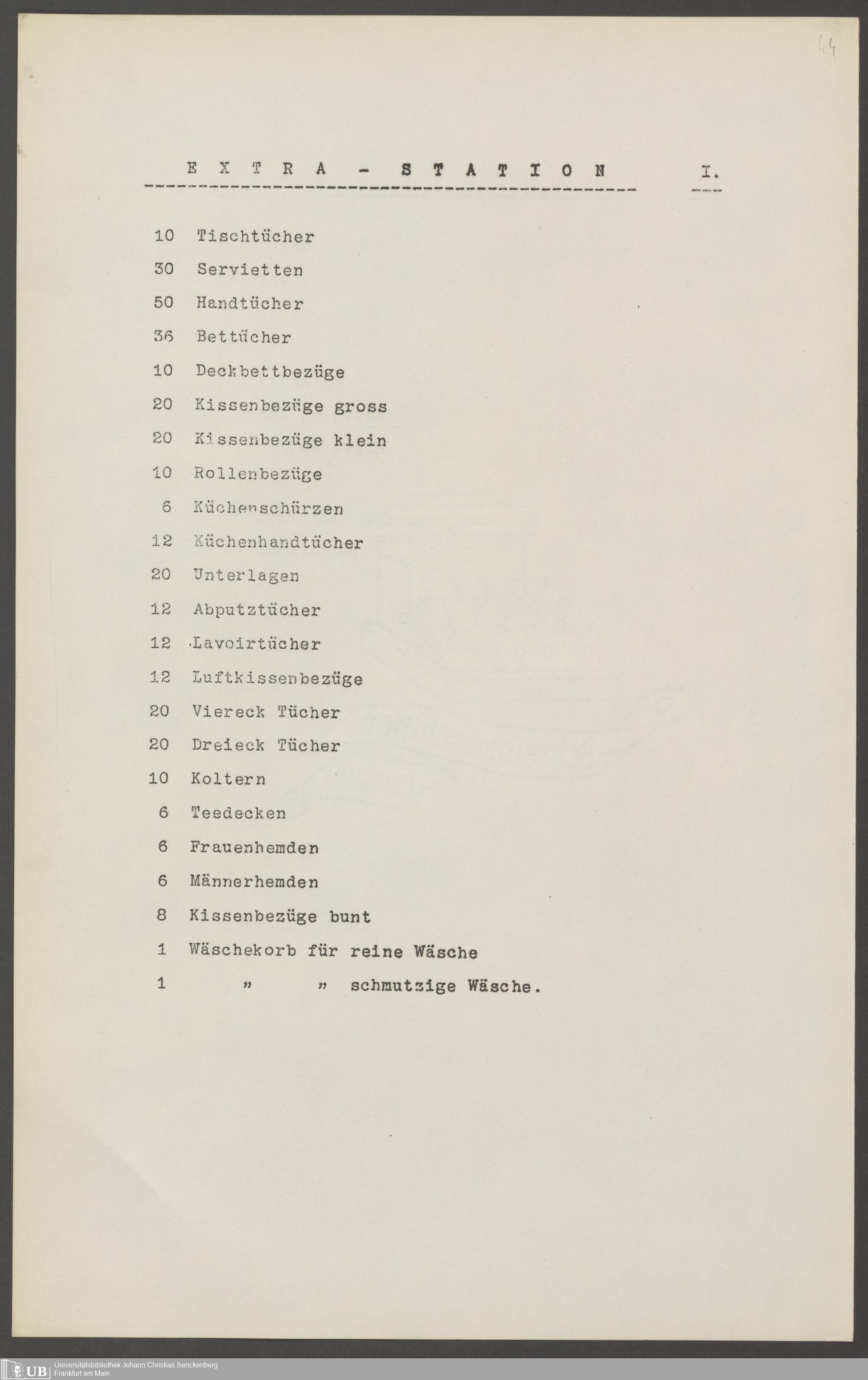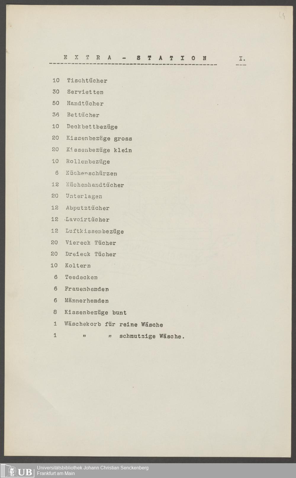 B 5 Dr. Senckenbergische Stiftung, 210 - Wäsche und Geschirrinventare des Krankenhauses und der Pfründner