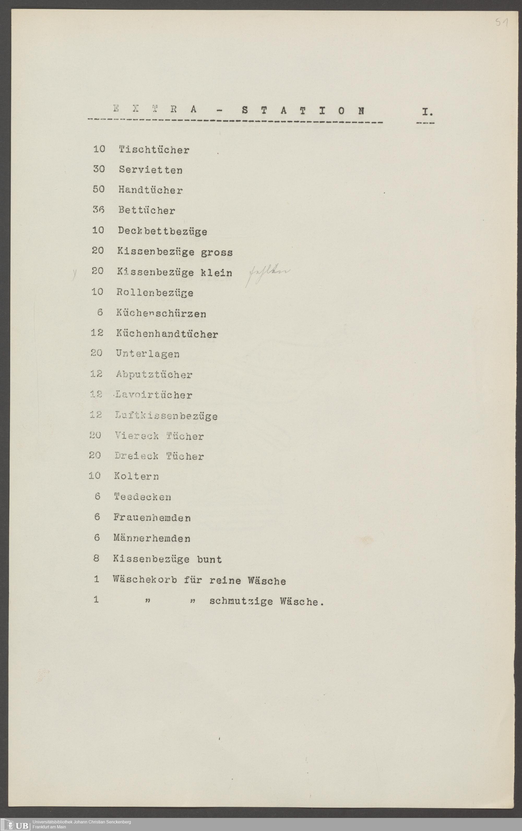 B 5 Dr. Senckenbergische Stiftung, 210 - Wäsche und Geschirrinventare des Krankenhauses und der Pfründner