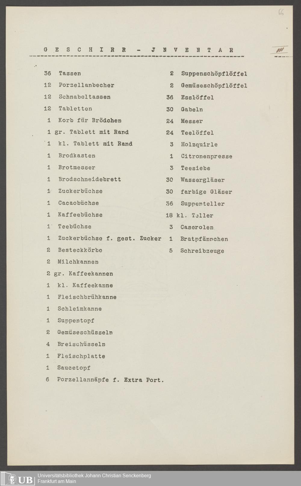 B 5 Dr. Senckenbergische Stiftung, 210 - Wäsche und Geschirrinventare des Krankenhauses und der Pfründner
