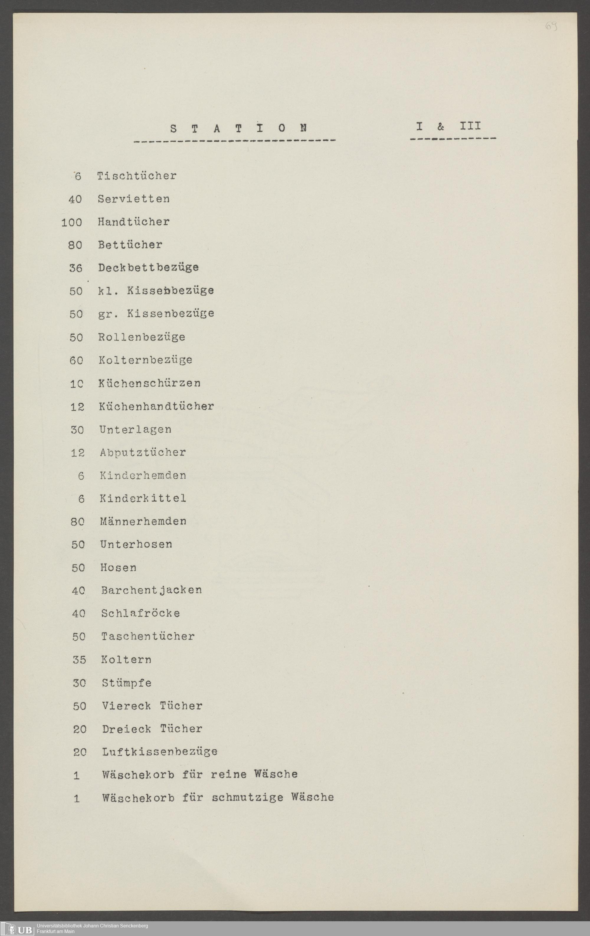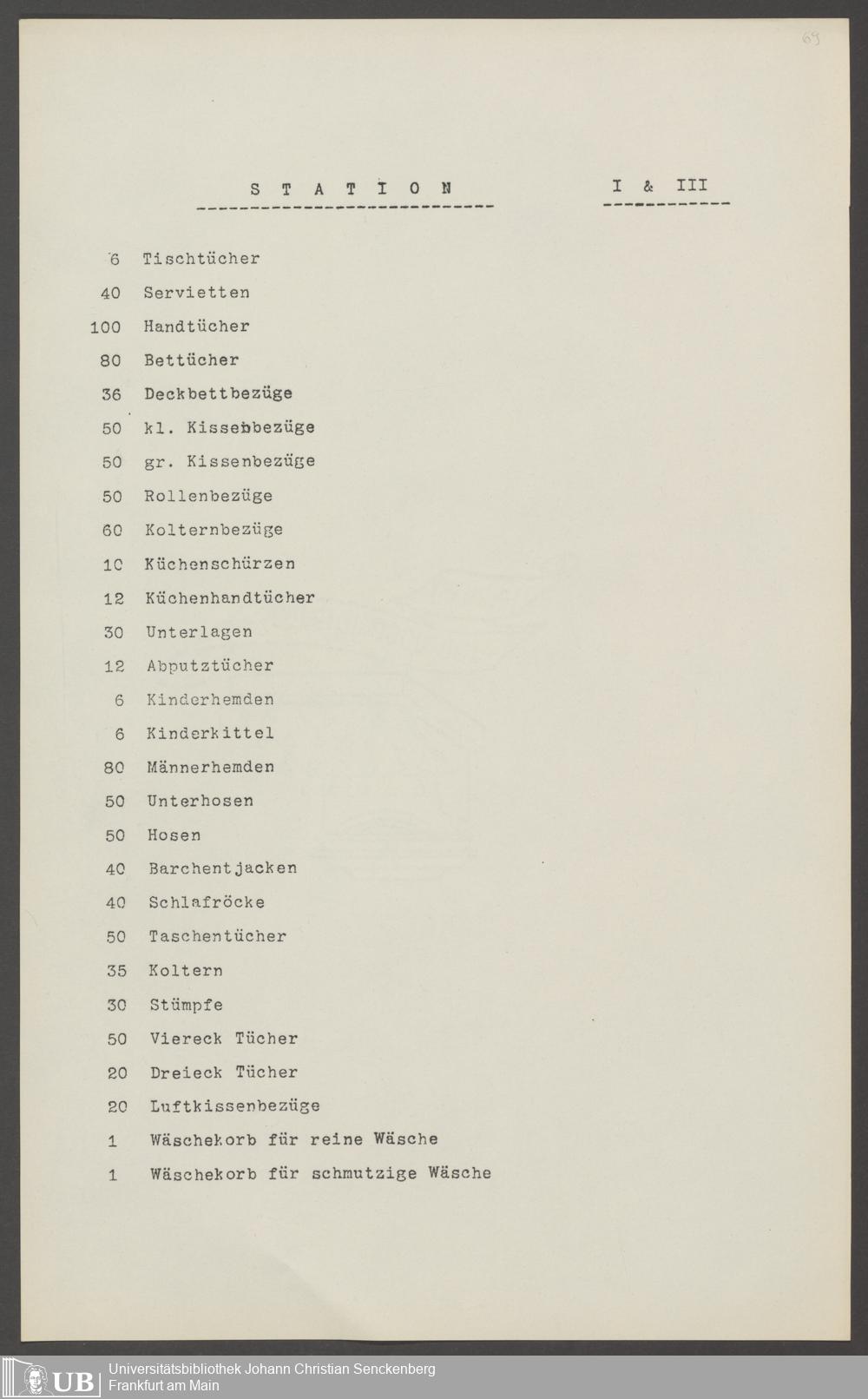 B 5 Dr. Senckenbergische Stiftung, 210 - Wäsche und Geschirrinventare des Krankenhauses und der Pfründner