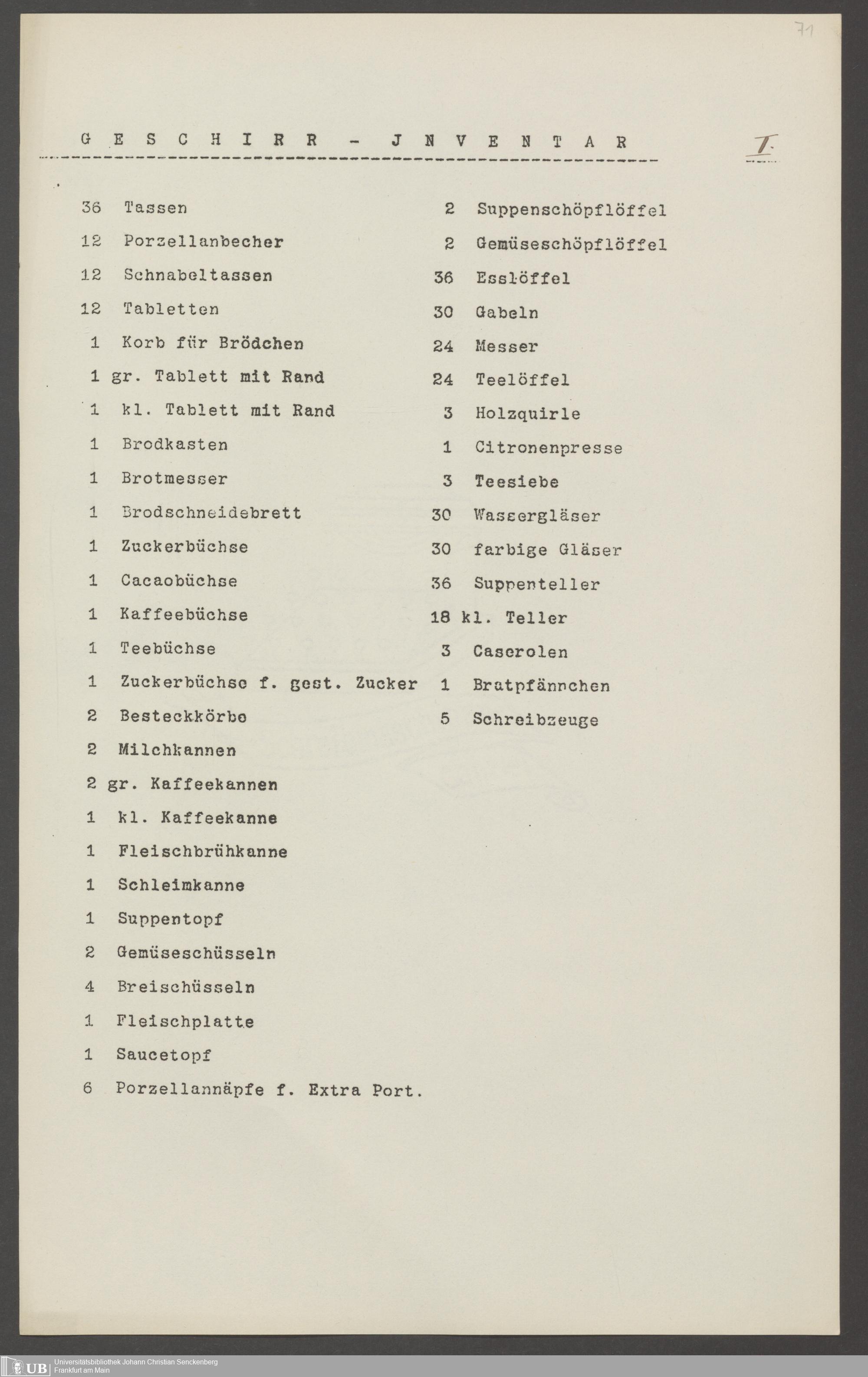 B 5 Dr. Senckenbergische Stiftung, 210 - Wäsche und Geschirrinventare des Krankenhauses und der Pfründner