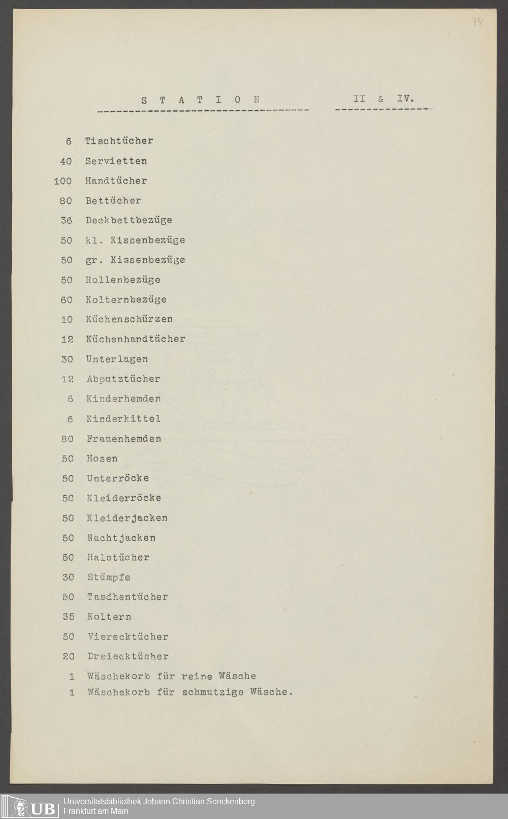 B 5 Dr. Senckenbergische Stiftung, 210 - Wäsche und Geschirrinventare des Krankenhauses und der Pfründner