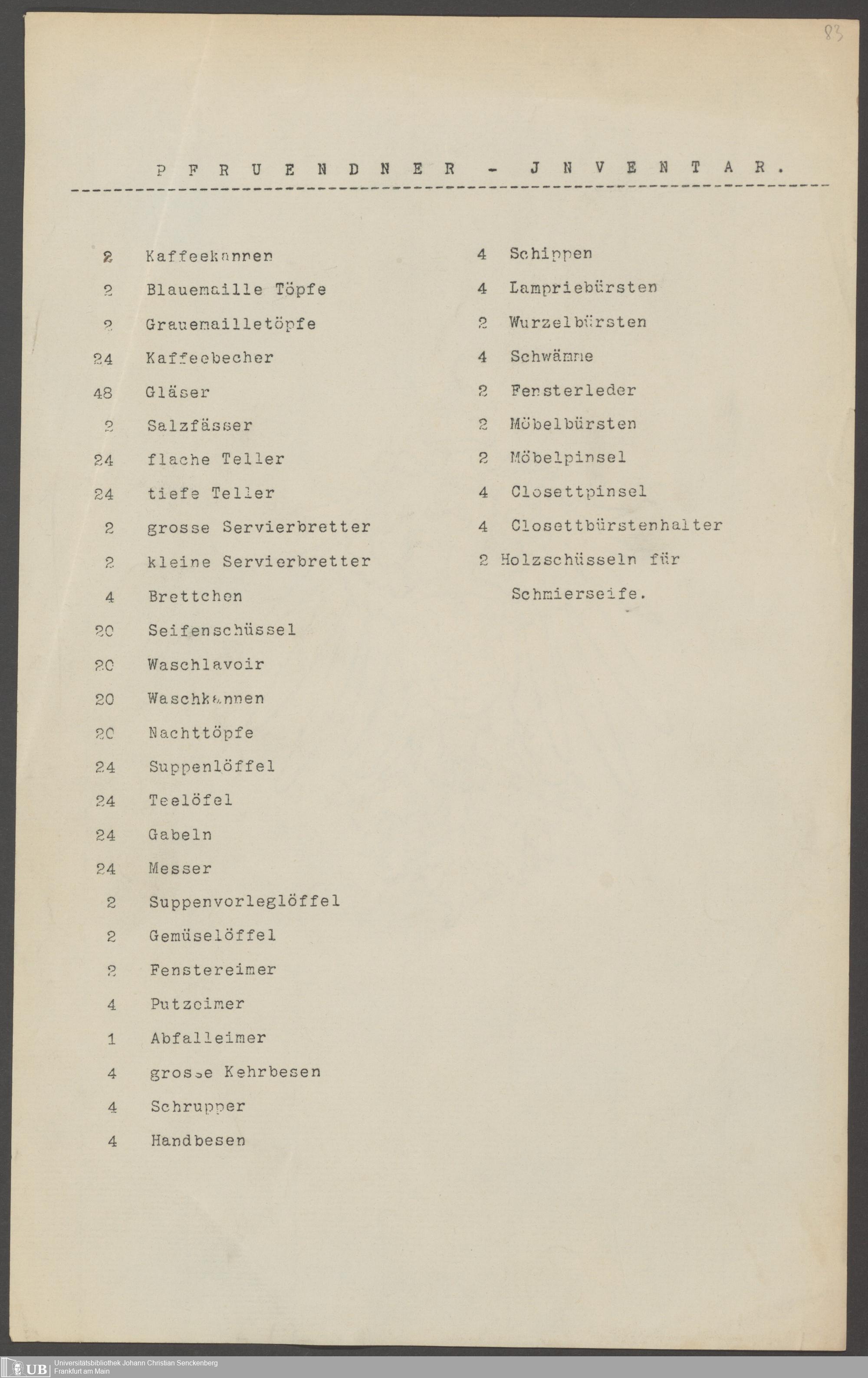 B 5 Dr. Senckenbergische Stiftung, 210 - Wäsche und Geschirrinventare des Krankenhauses und der Pfründner