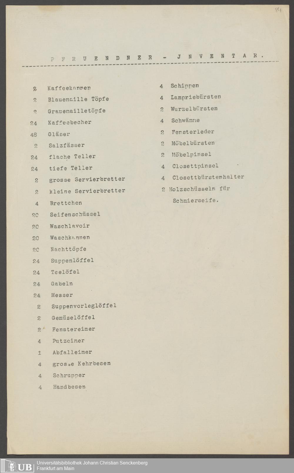 B 5 Dr. Senckenbergische Stiftung, 210 - Wäsche und Geschirrinventare des Krankenhauses und der Pfründner