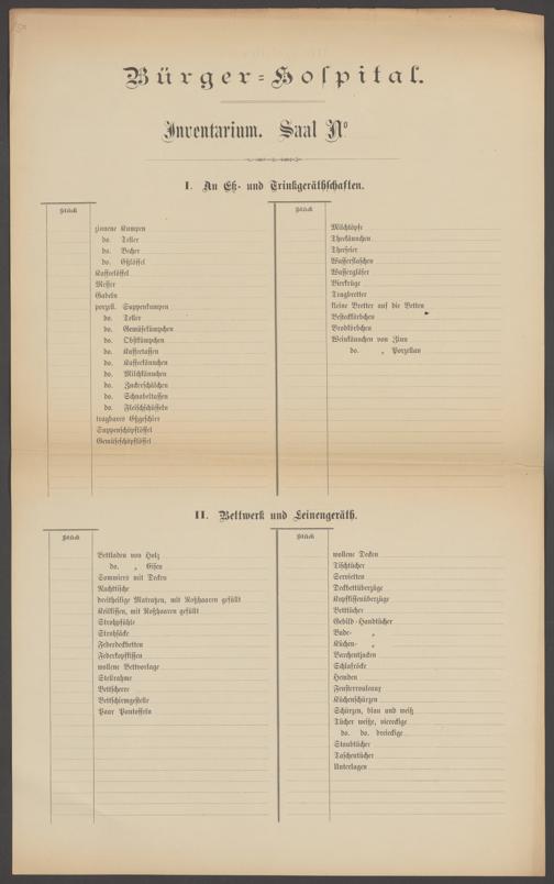 B 5 Dr. Senckenbergische Stiftung, 210 - Wäsche und Geschirrinventare des Krankenhauses und der Pfründner