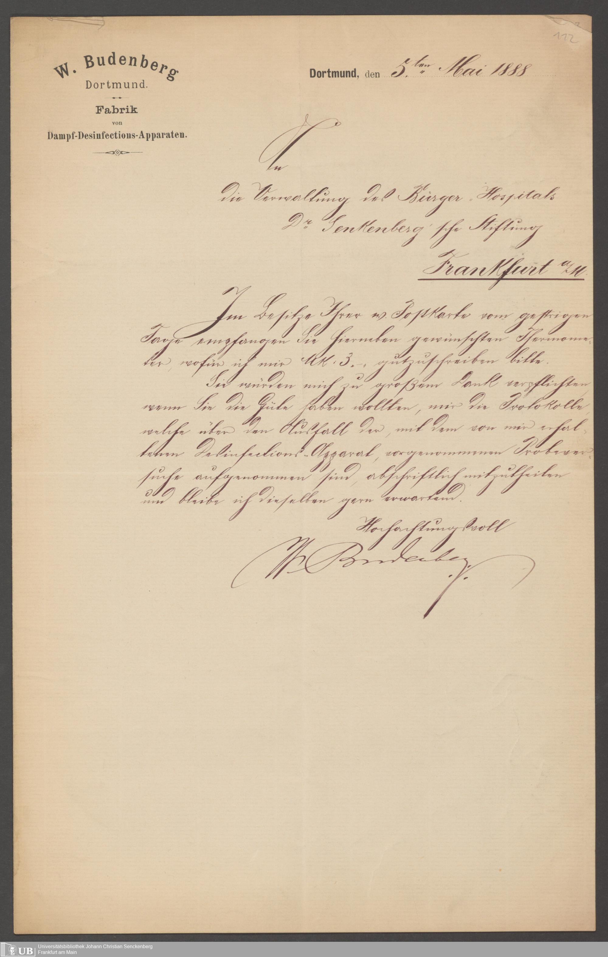 B 5 Dr. Senckenbergische Stiftung, 212 - Desinfektionen und Entseuchungsverfahren im Bürgerhospital