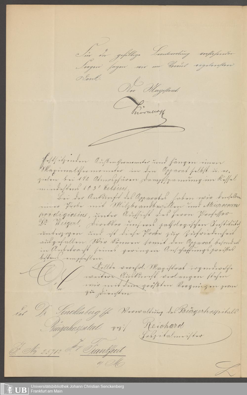 B 5 Dr. Senckenbergische Stiftung, 212 - Desinfektionen und Entseuchungsverfahren im Bürgerhospital