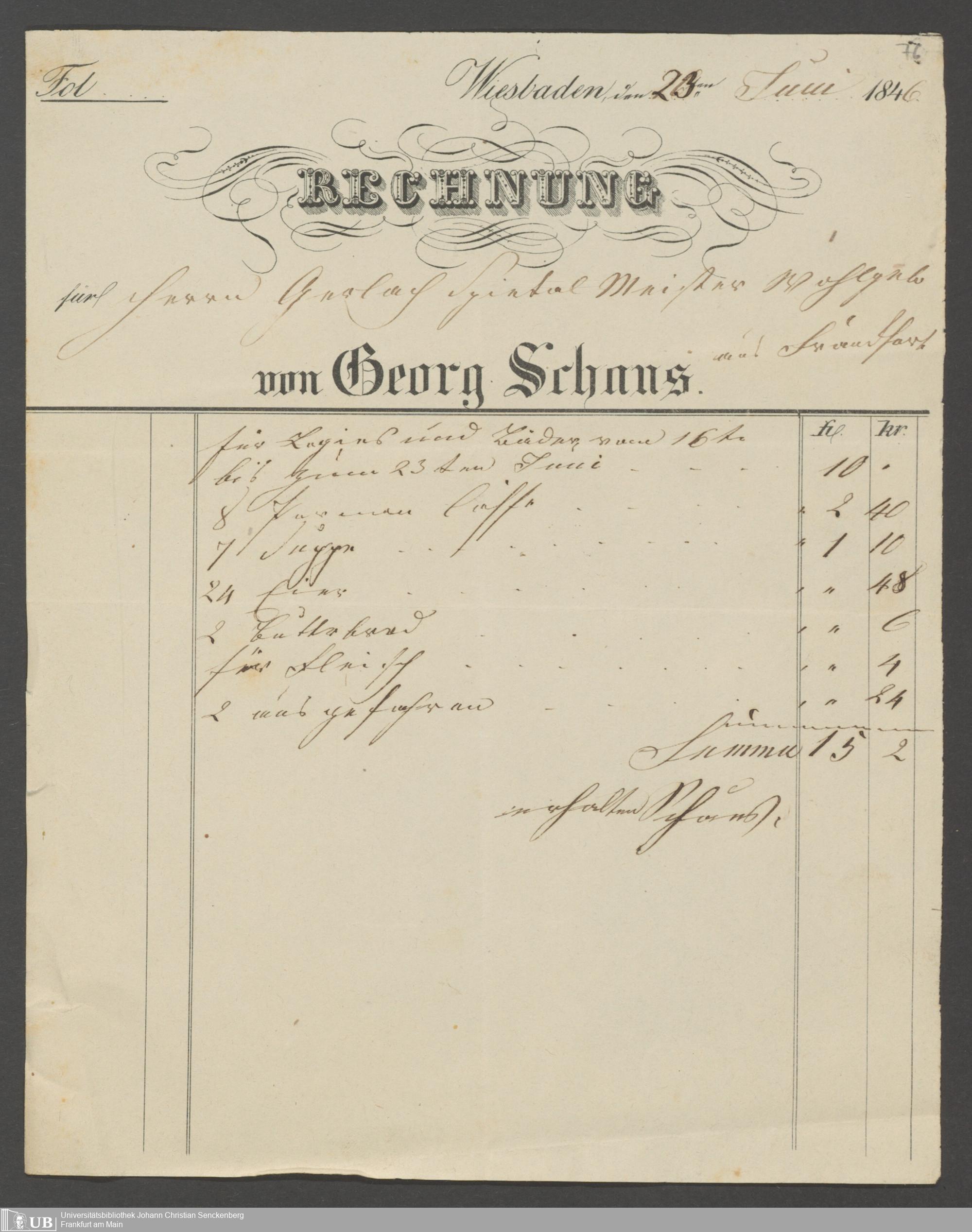 Nachlass Johann Wilhelm Boegner
