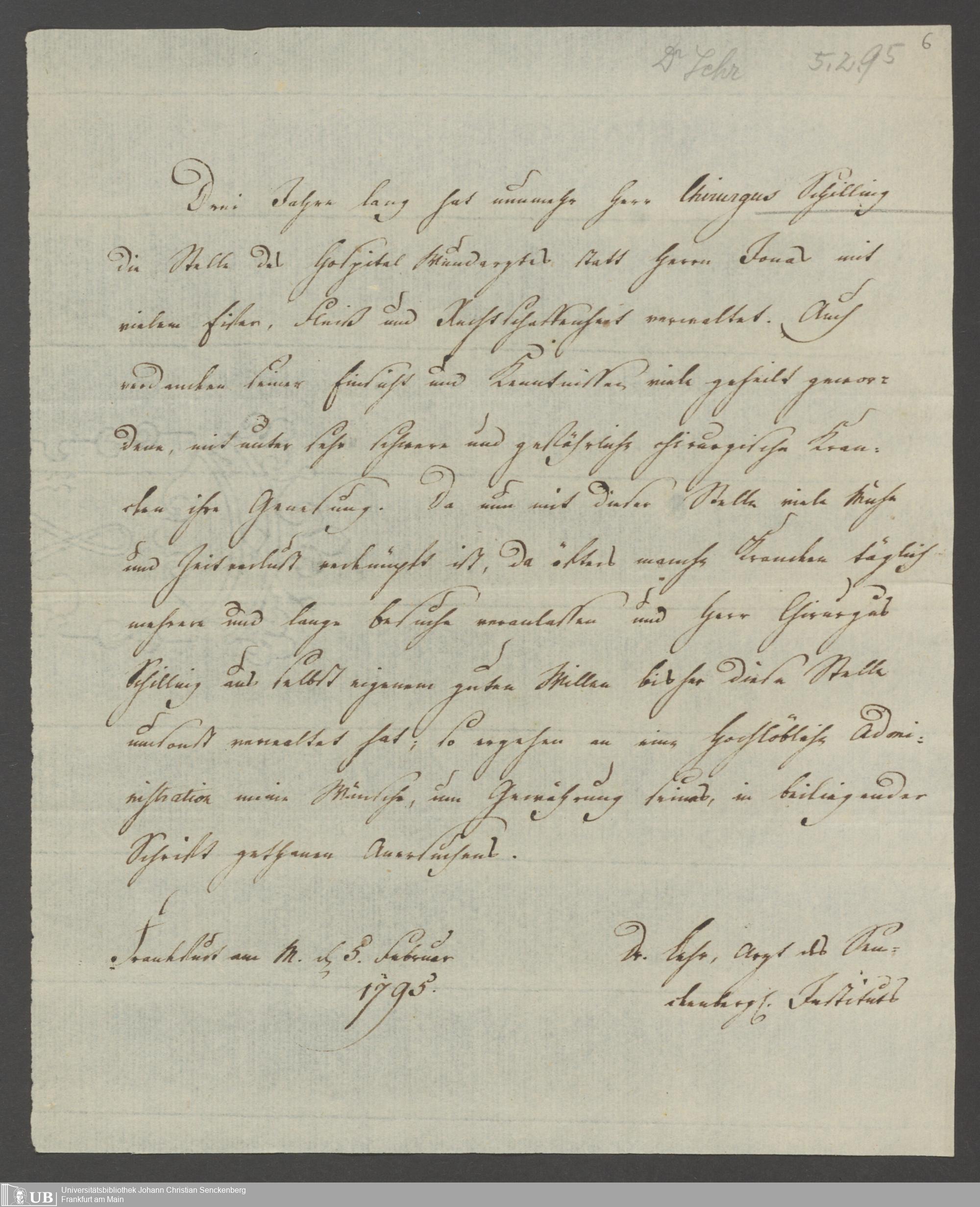 B 5 Dr. Senckenbergische Stiftung, 214 - Chirurgstelle im Bürgerhospital