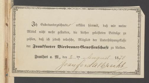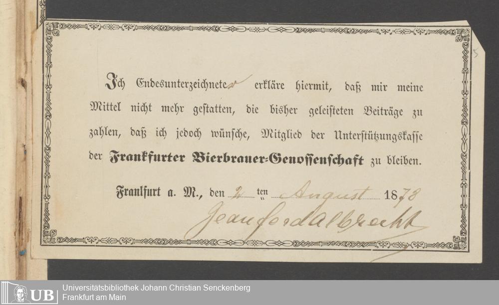 B 5 Dr. Senckenbergische Stiftung, 218 - Schreiben der Geschworenen des Bierbrauer- Handwerks an die Administration