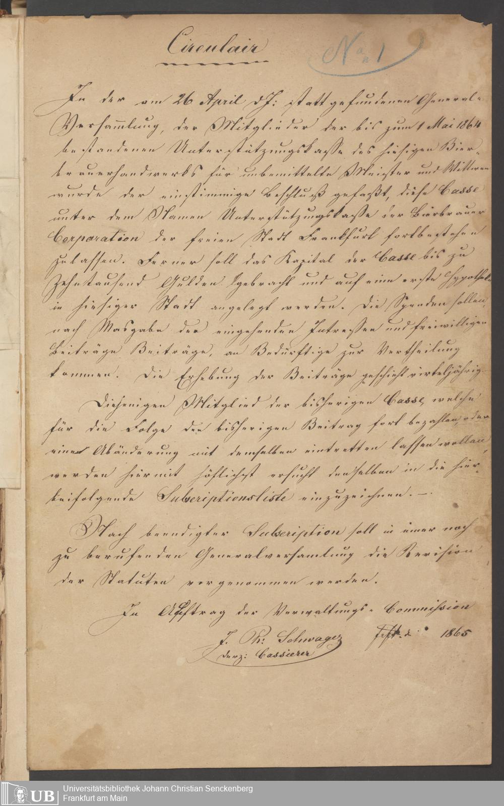 B 5 Dr. Senckenbergische Stiftung, 218 - Schreiben der Geschworenen des Bierbrauer- Handwerks an die Administration