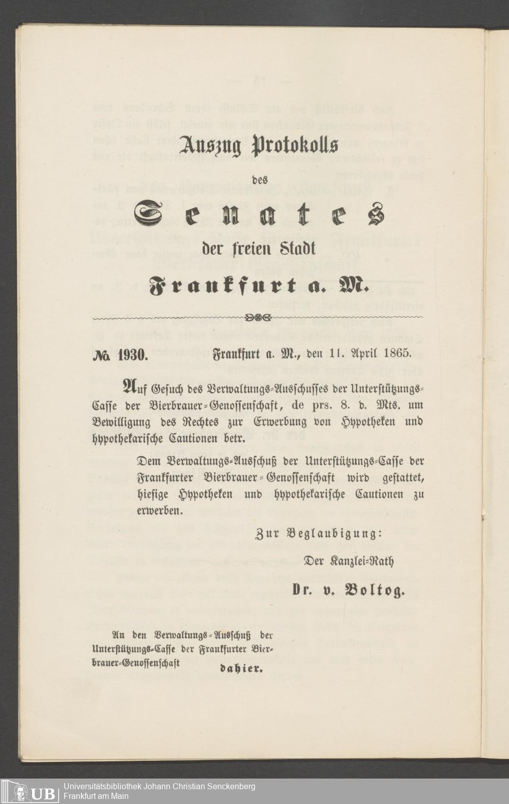 B 5 Dr. Senckenbergische Stiftung, 218 - Schreiben der Geschworenen des Bierbrauer- Handwerks an die Administration