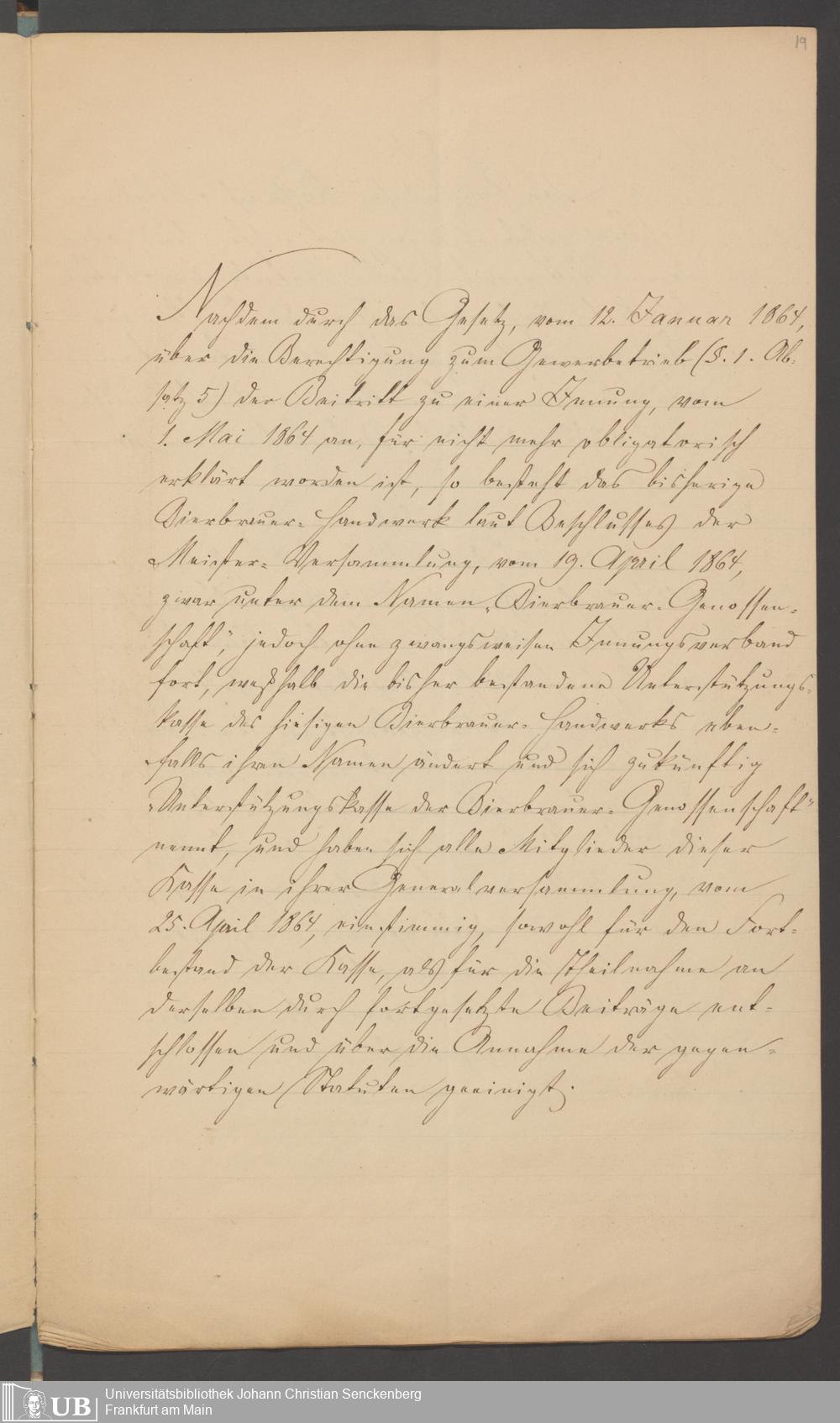 B 5 Dr. Senckenbergische Stiftung, 218 - Schreiben der Geschworenen des Bierbrauer- Handwerks an die Administration
