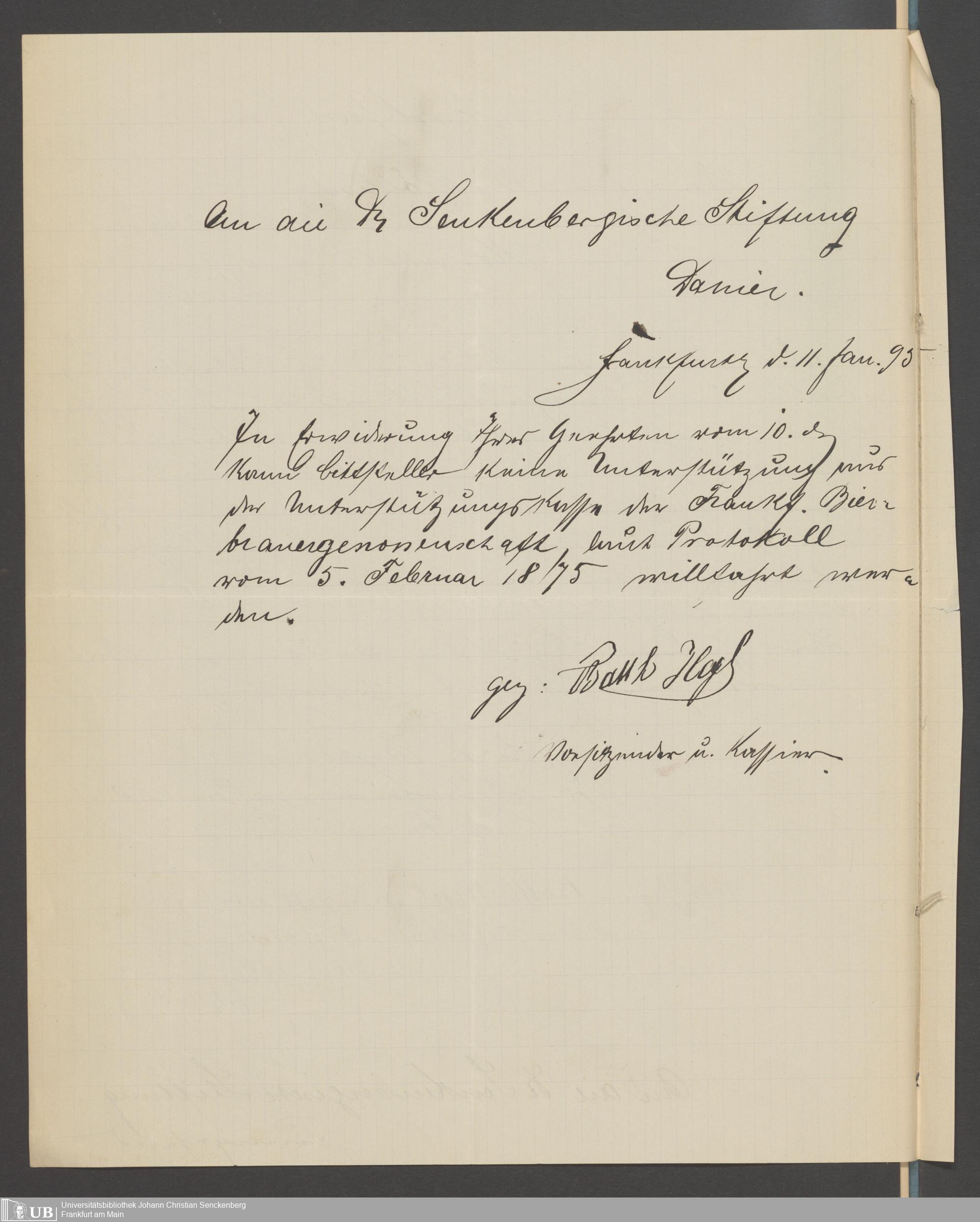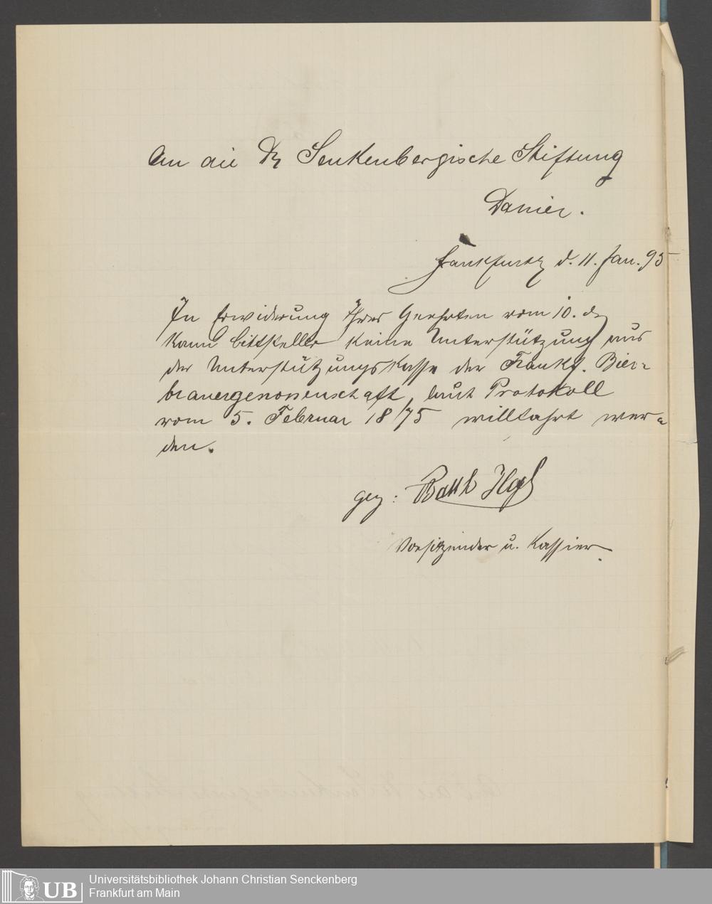 B 5 Dr. Senckenbergische Stiftung, 218 - Schreiben der Geschworenen des Bierbrauer- Handwerks an die Administration