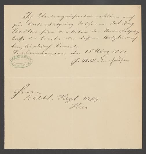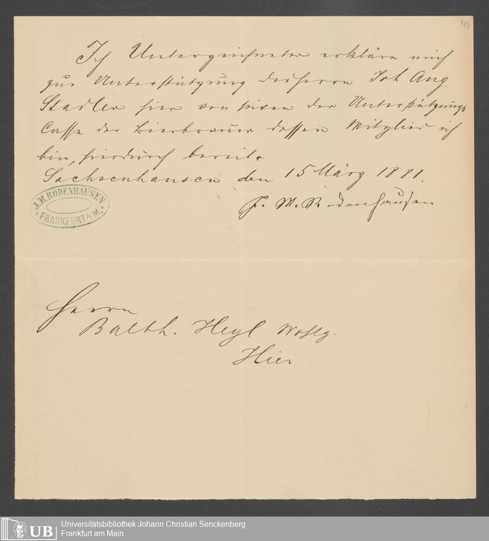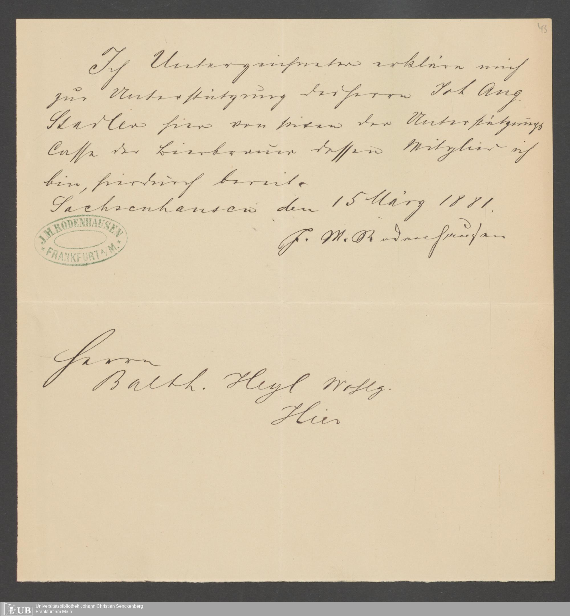 B 5 Dr. Senckenbergische Stiftung, 218 - Schreiben der Geschworenen des Bierbrauer- Handwerks an die Administration