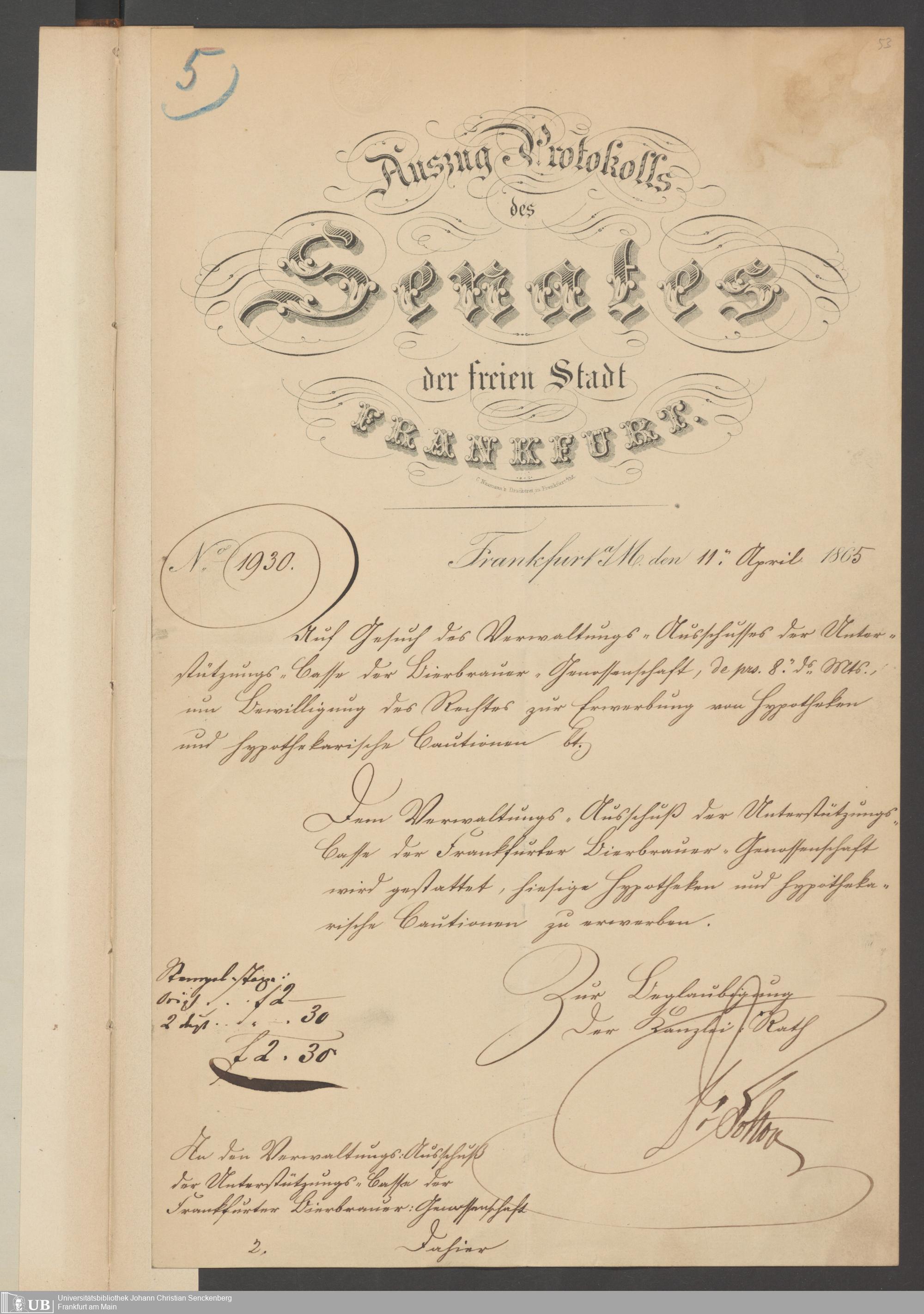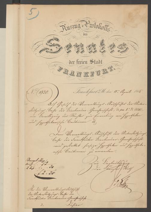 B 5 Dr. Senckenbergische Stiftung, 218 - Schreiben der Geschworenen des Bierbrauer- Handwerks an die Administration