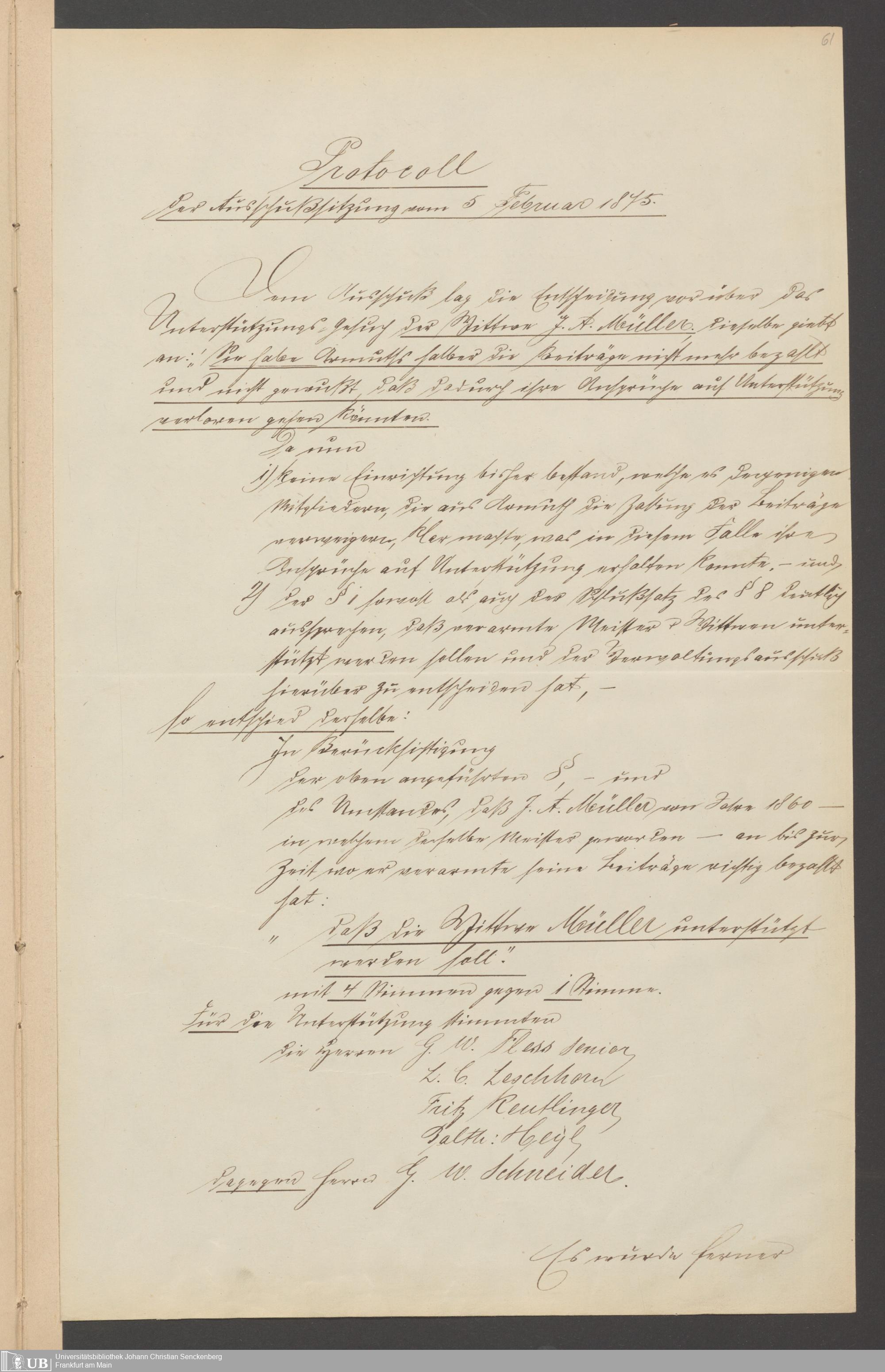 B 5 Dr. Senckenbergische Stiftung, 218 - Schreiben der Geschworenen des Bierbrauer- Handwerks an die Administration