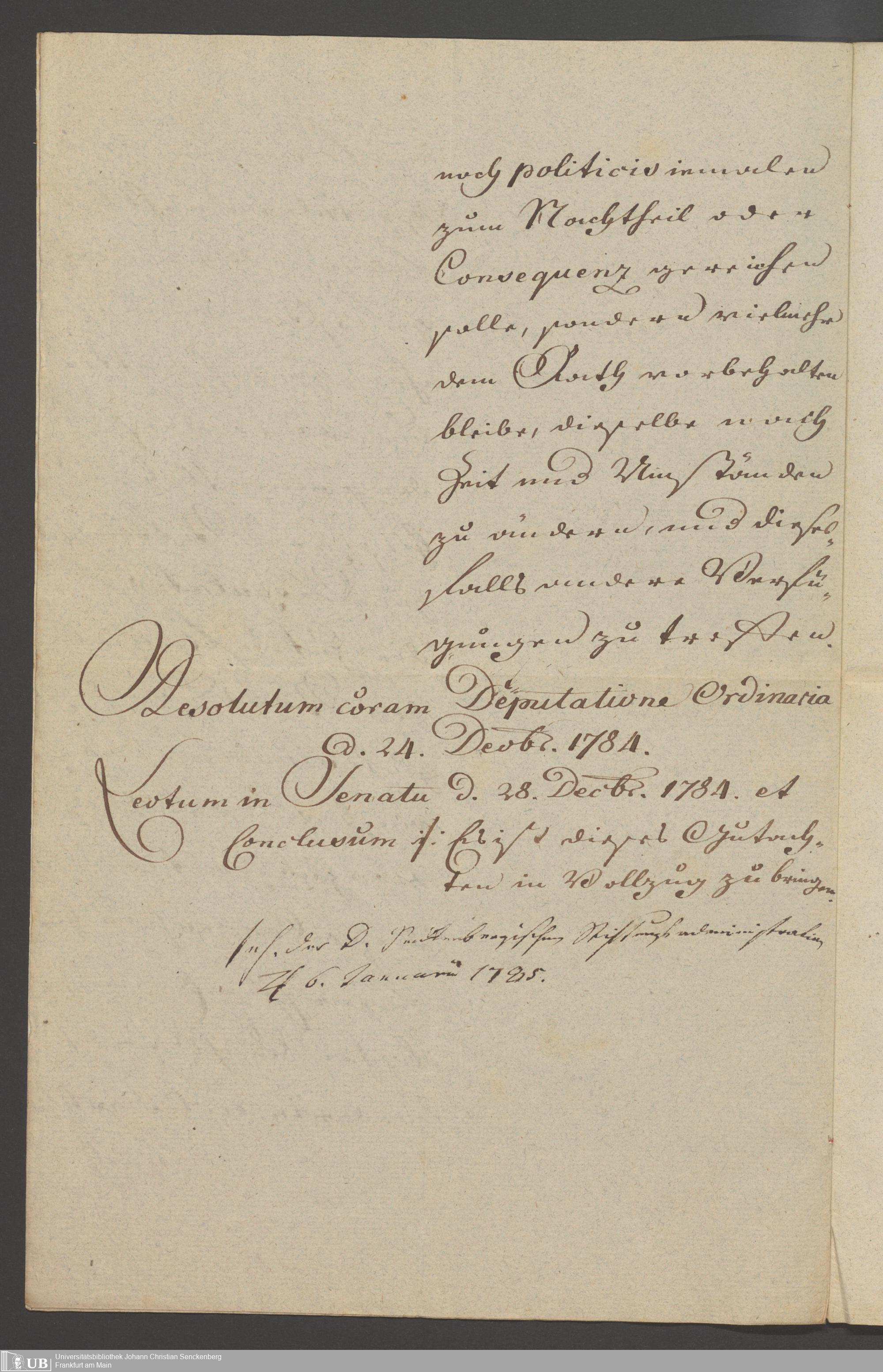 B 5 Dr. Senckenbergische Stiftung, 224 - Berichte und Beschlüsse über Gottesdienst und Begräbnisse für Katholiken und Reformierte