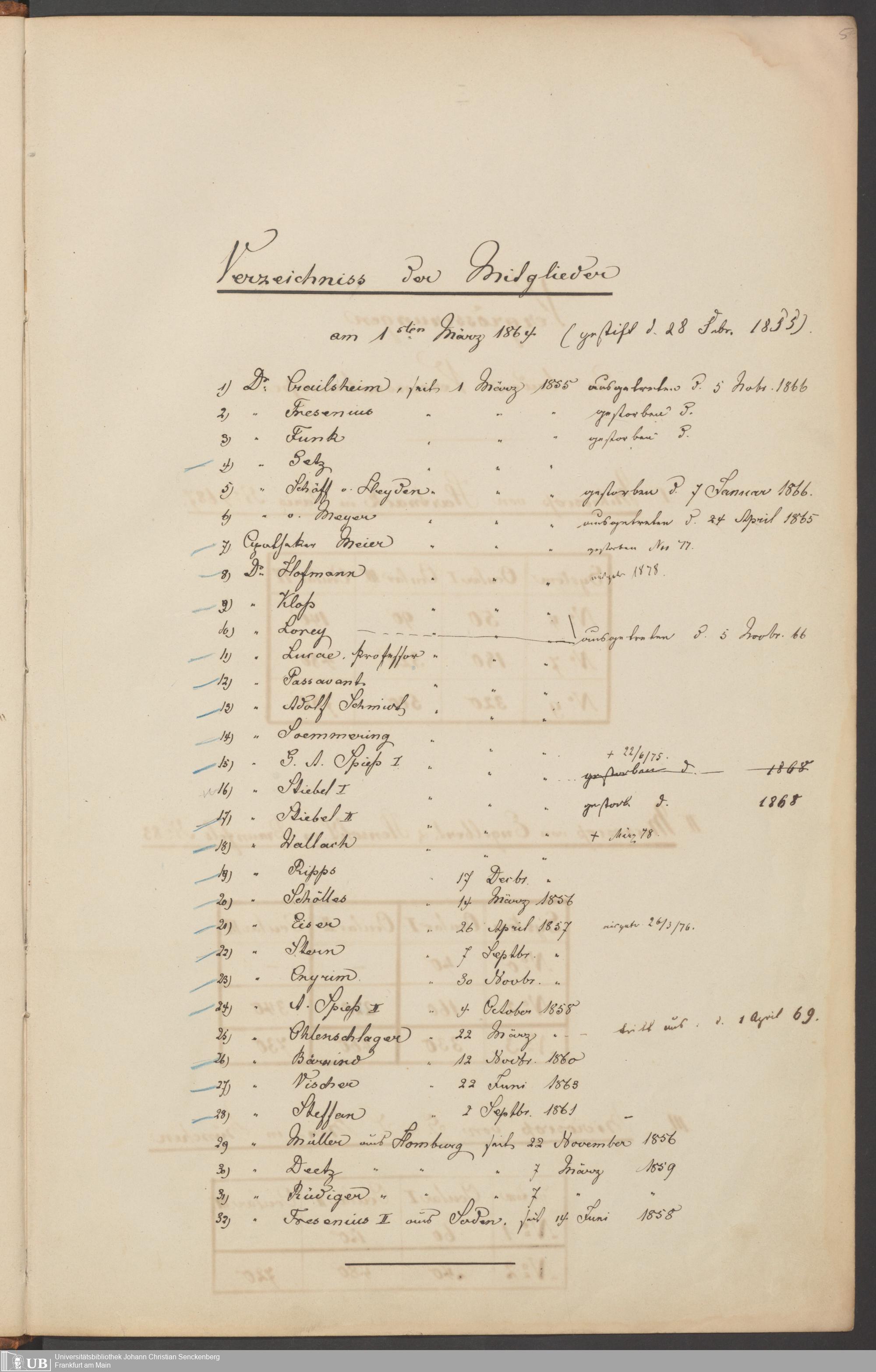 B 5 Dr. Senckenbergische Stiftung, 235 - Protokollbuch des Mikroskopischen Vereins