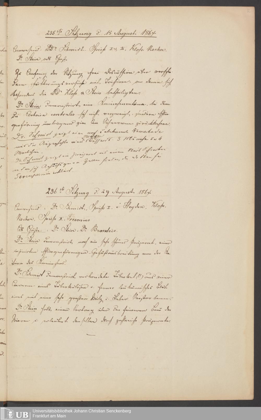 B 5 Dr. Senckenbergische Stiftung, 235 - Protokollbuch des Mikroskopischen Vereins
