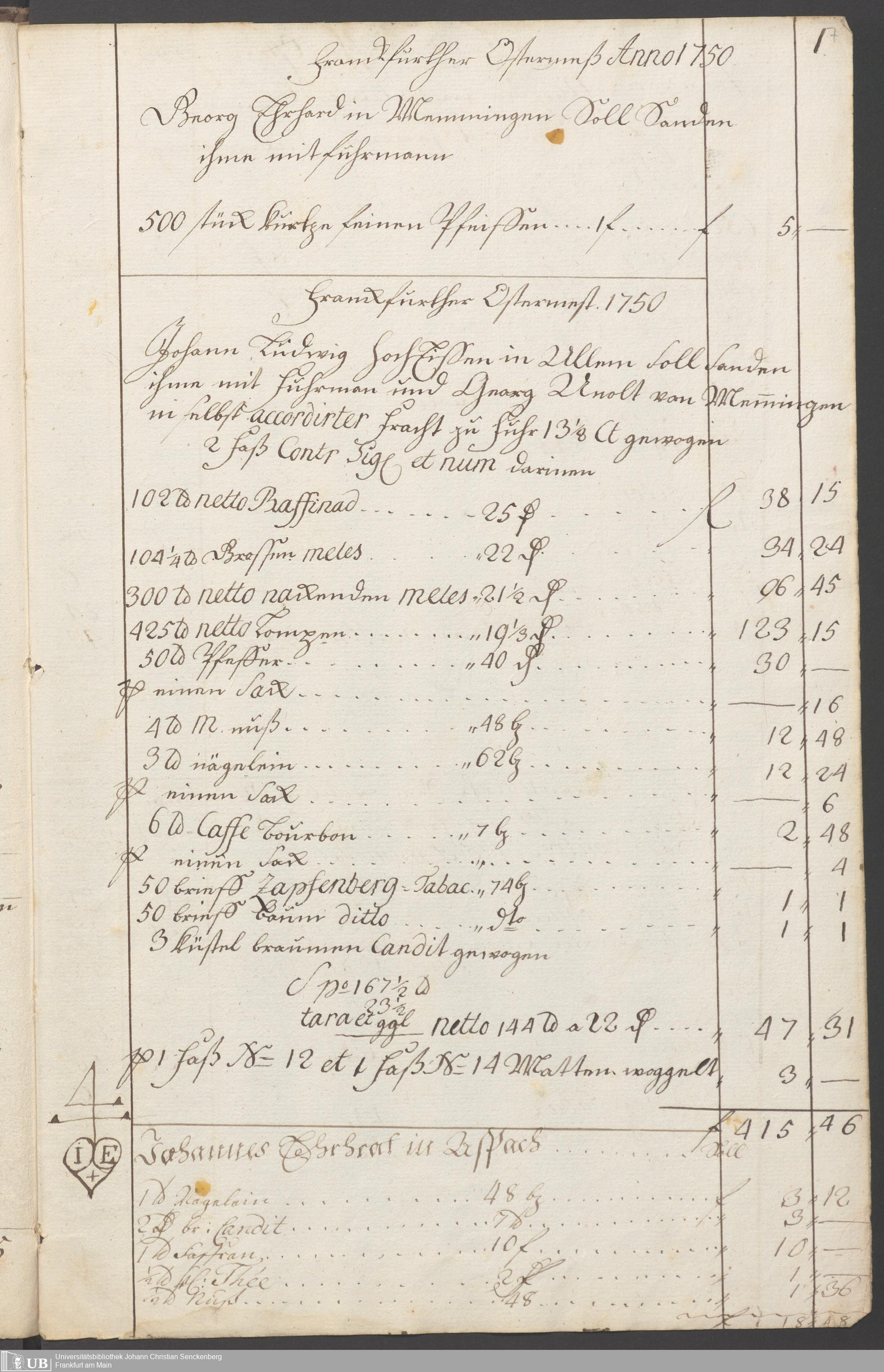 B 5 Dr. Senckenbergische Stiftung, 236 - Aufzeichnungen aus der Frankfurter Ostermesse