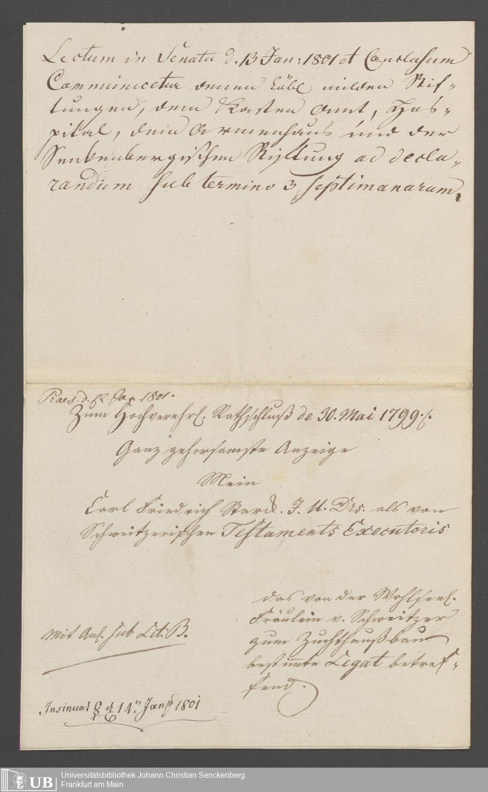 B 5 Dr. Senckenbergische Stiftung, 238 - Schweitzerisches Legat zum Zuchthausbau