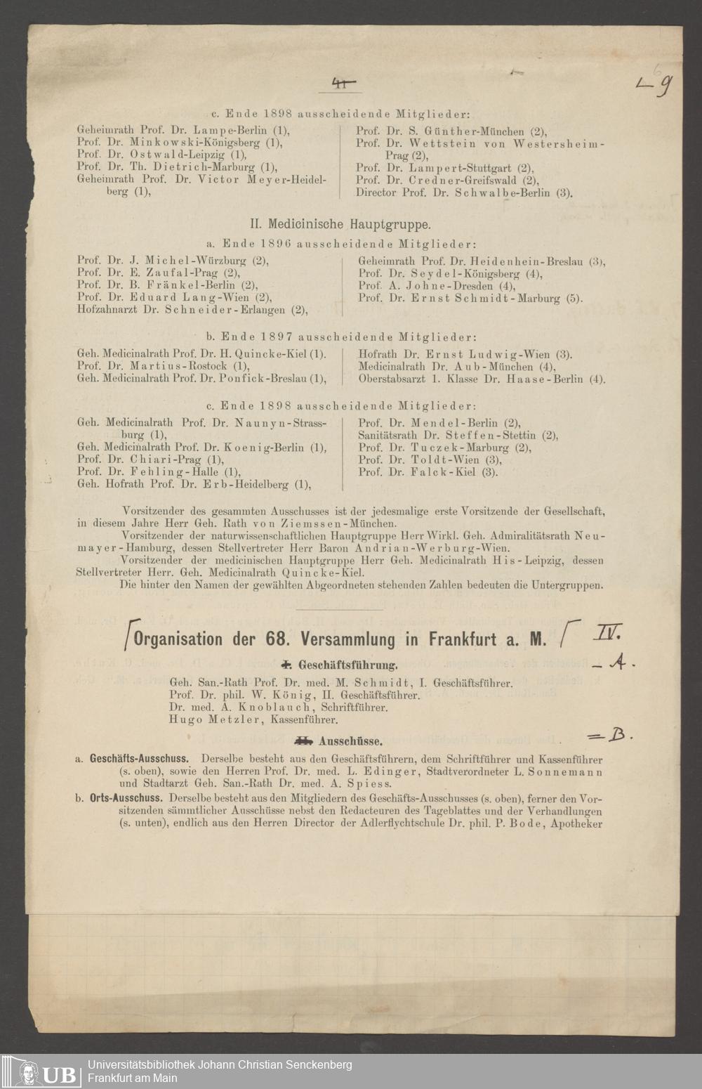B 5 Dr. Senckenbergische Stiftung, 246 - 68. Versammlung Deutscher Naturforschender und Ärzte