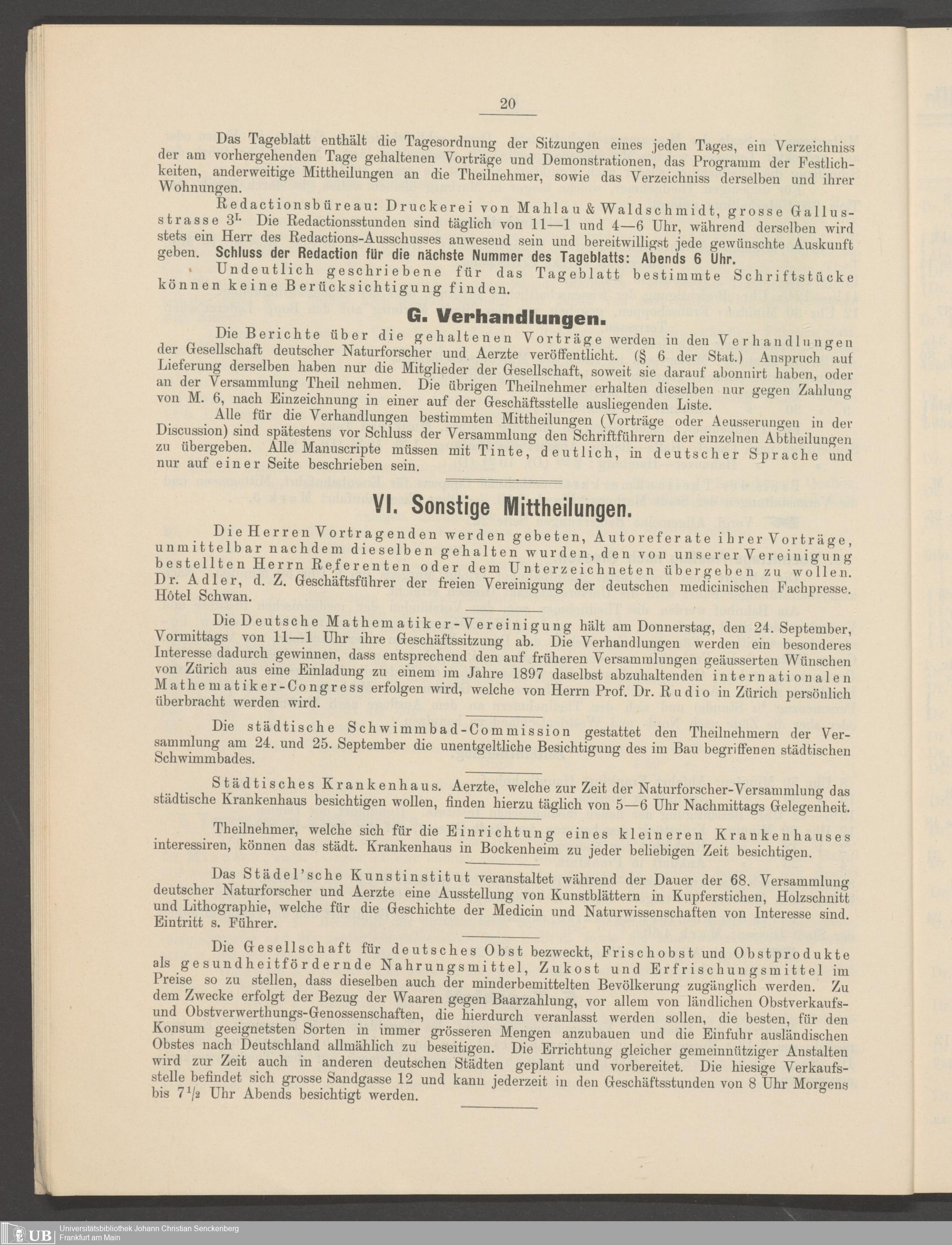 B 5 Dr. Senckenbergische Stiftung, 246 - 68. Versammlung Deutscher Naturforschender und Ärzte