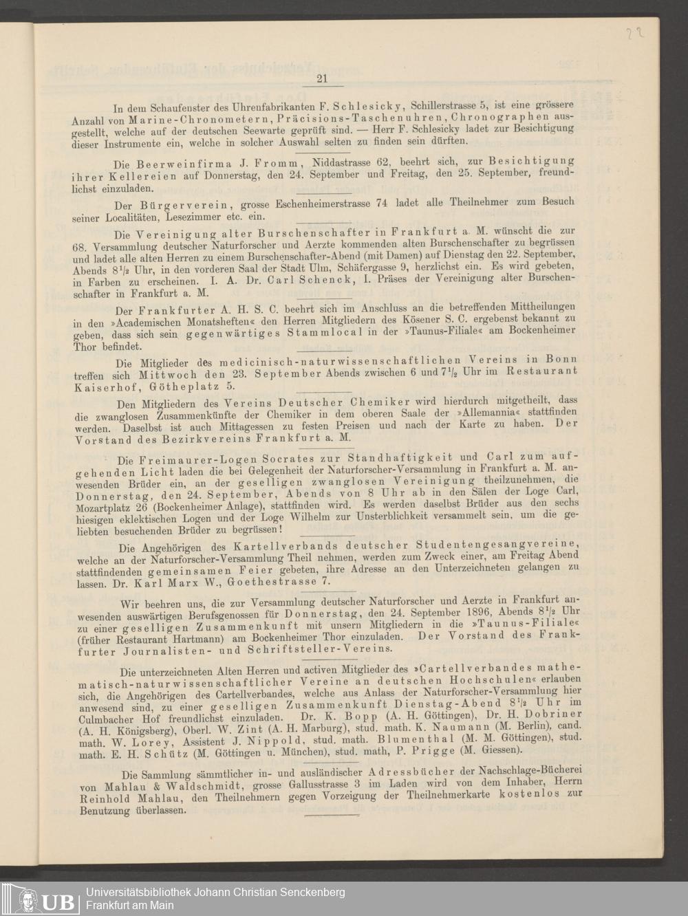 B 5 Dr. Senckenbergische Stiftung, 246 - 68. Versammlung Deutscher Naturforschender und Ärzte