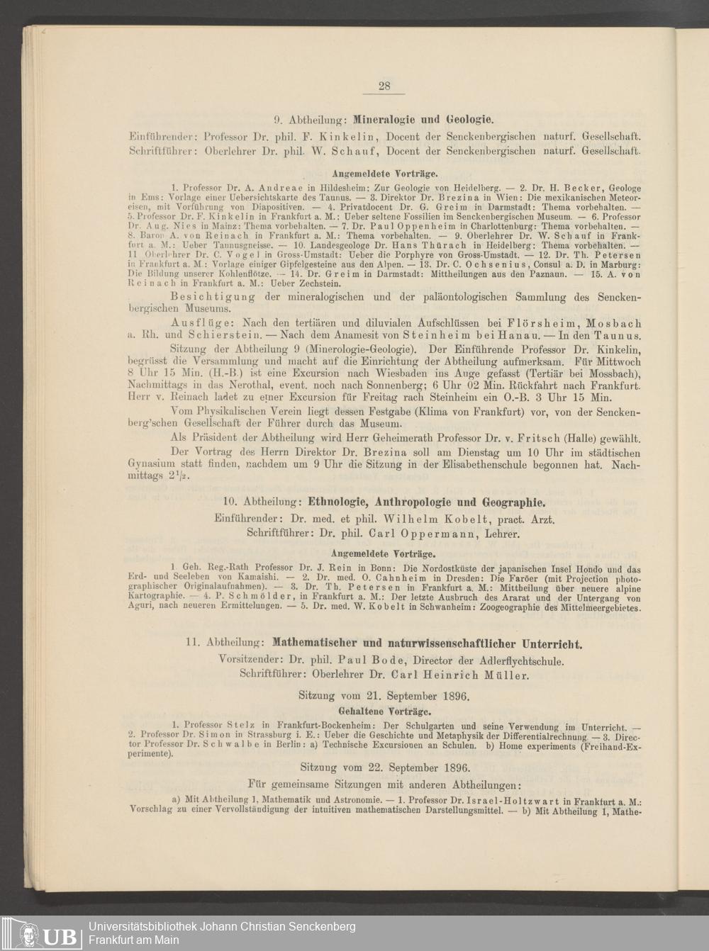 B 5 Dr. Senckenbergische Stiftung, 246 - 68. Versammlung Deutscher Naturforschender und Ärzte