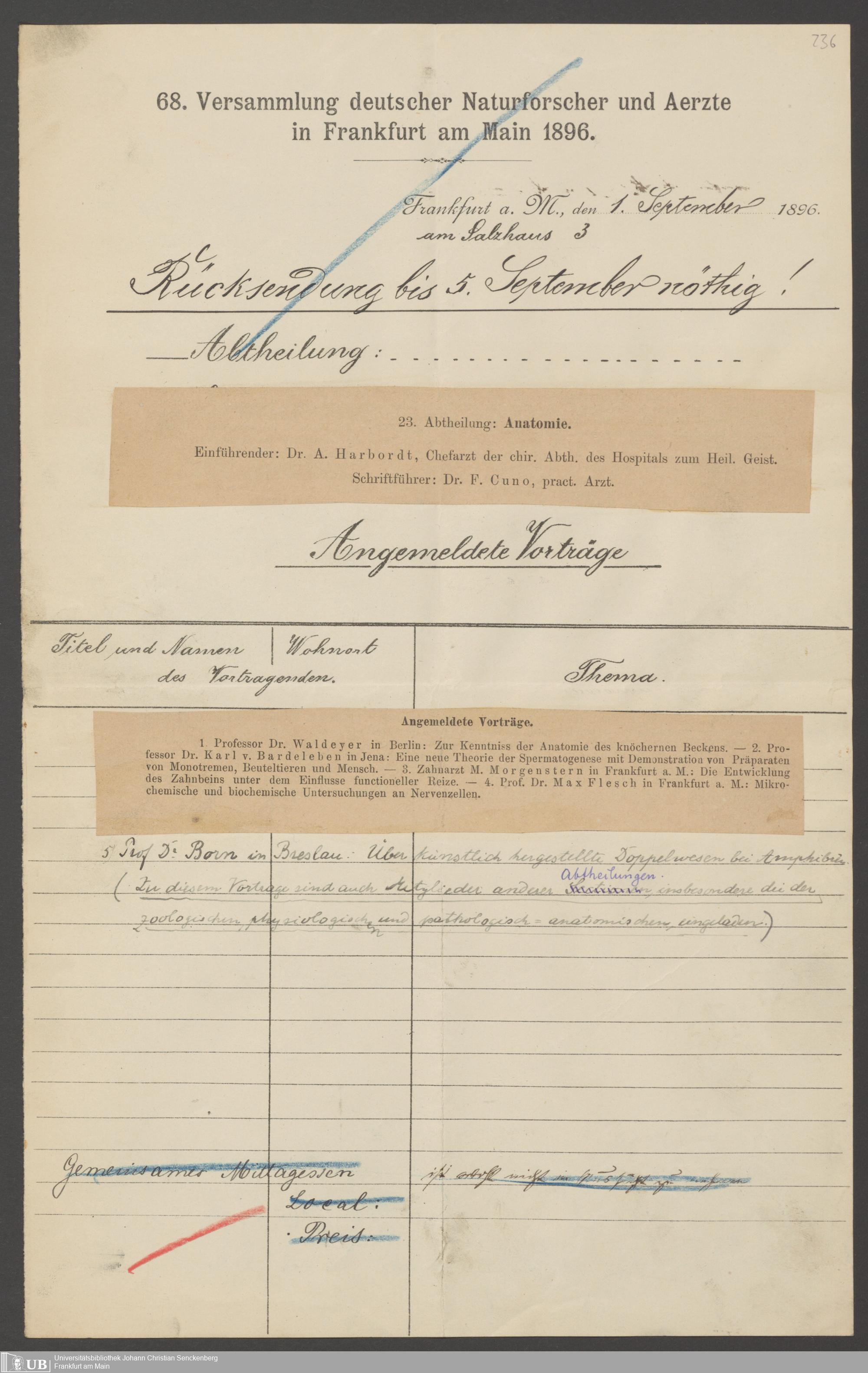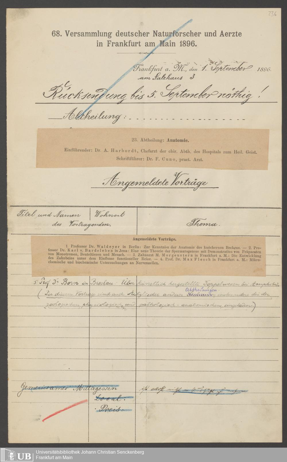 B 5 Dr. Senckenbergische Stiftung, 246 - 68. Versammlung Deutscher Naturforschender und Ärzte