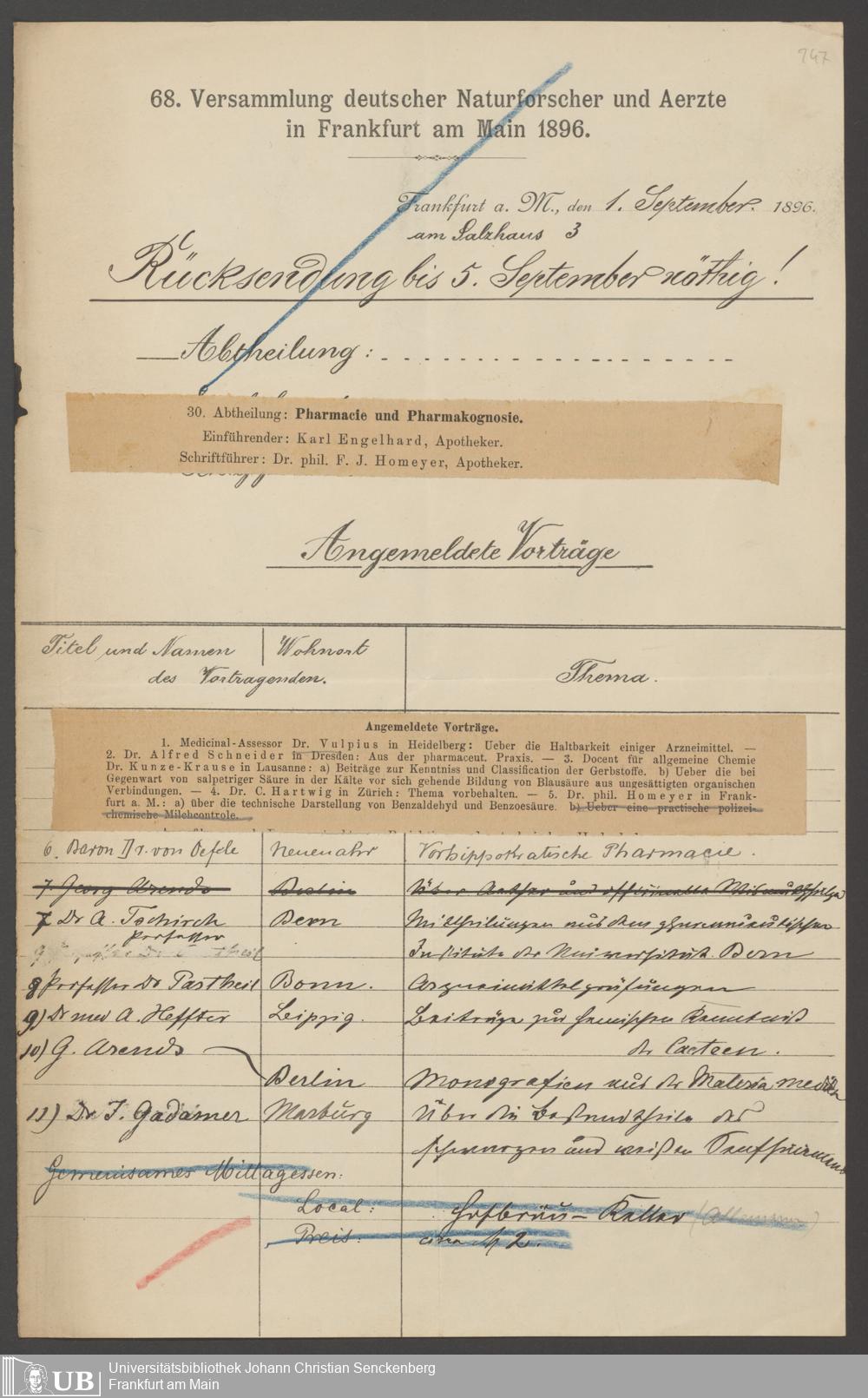 B 5 Dr. Senckenbergische Stiftung, 246 - 68. Versammlung Deutscher Naturforschender und Ärzte