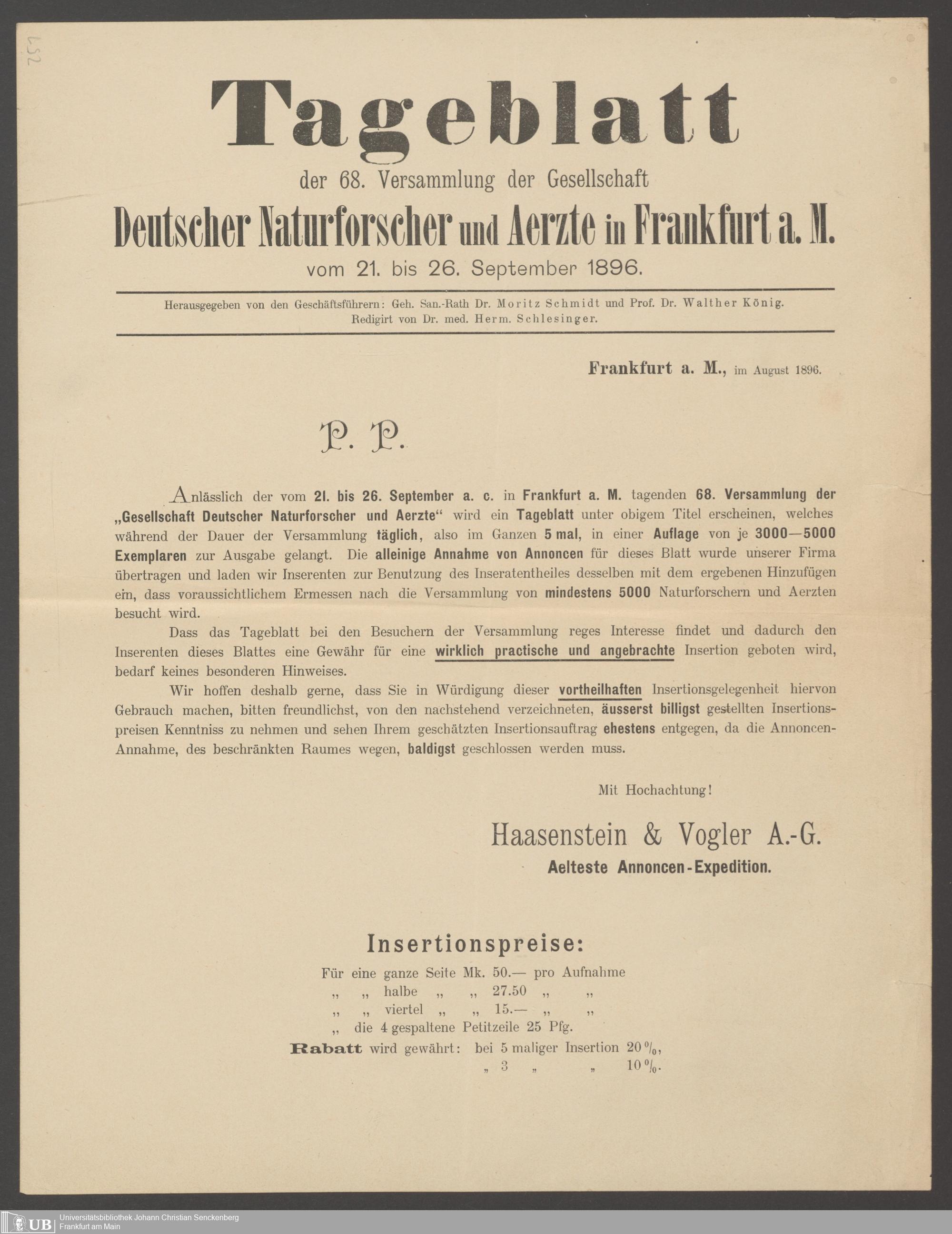 B 5 Dr. Senckenbergische Stiftung, 246 - 68. Versammlung Deutscher Naturforschender und Ärzte