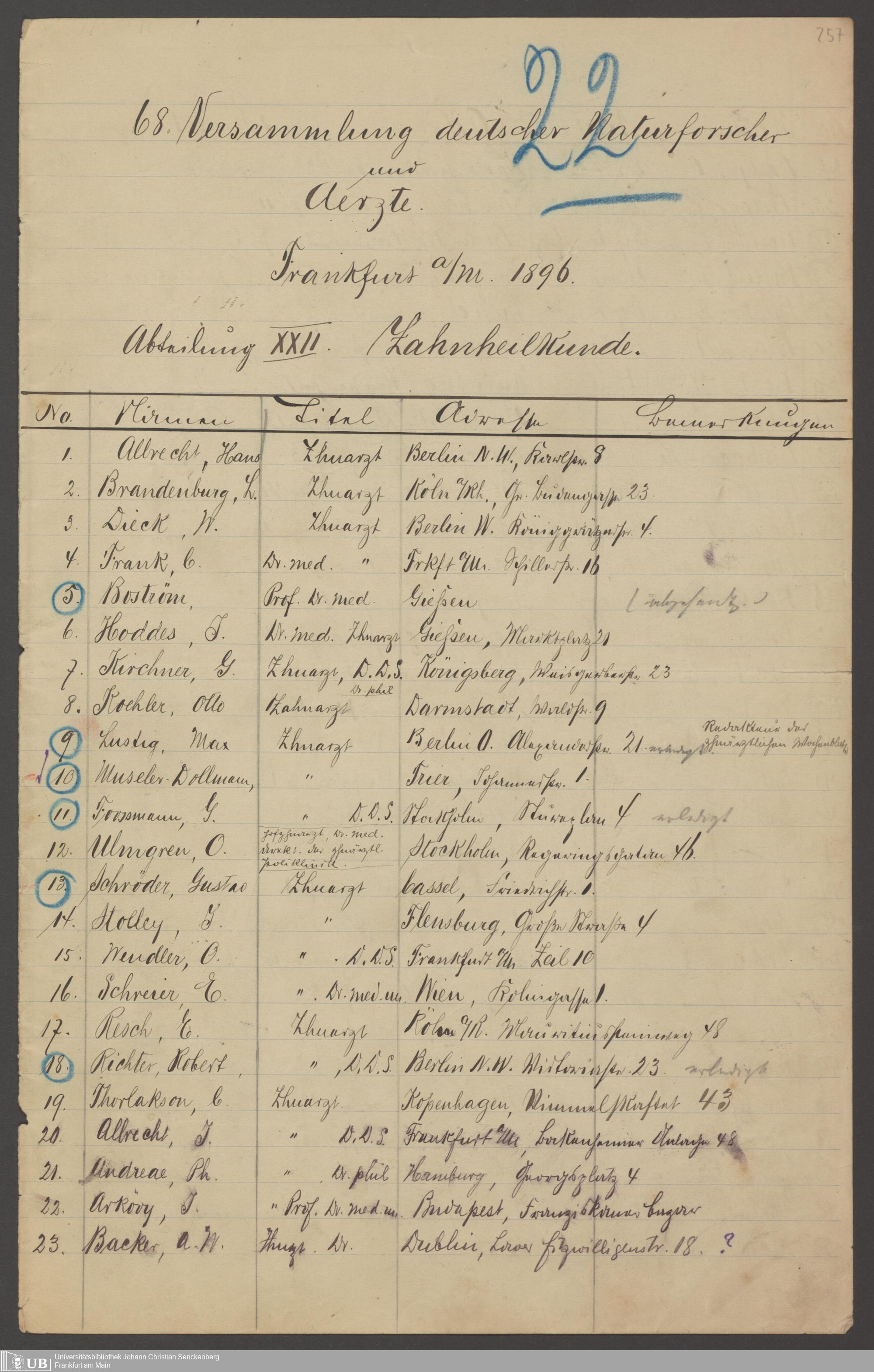 B 5 Dr. Senckenbergische Stiftung, 246 - 68. Versammlung Deutscher Naturforschender und Ärzte