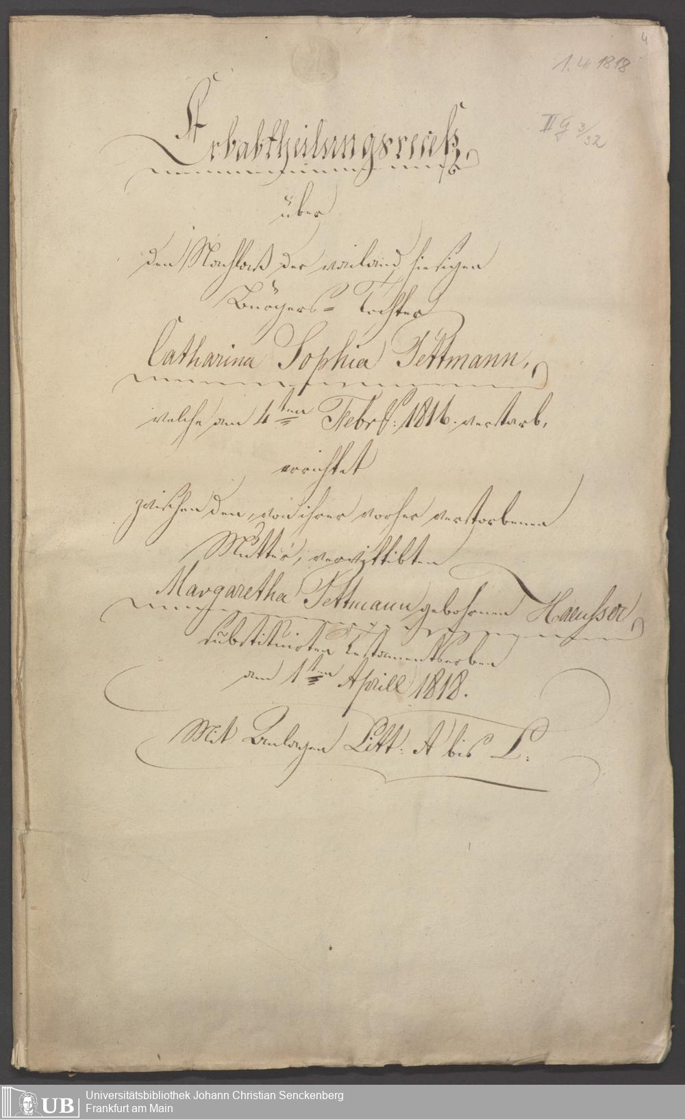 B 5 Dr. Senckenbergische Stiftung, 263 - Testament Magdalena Margarethe Andrae