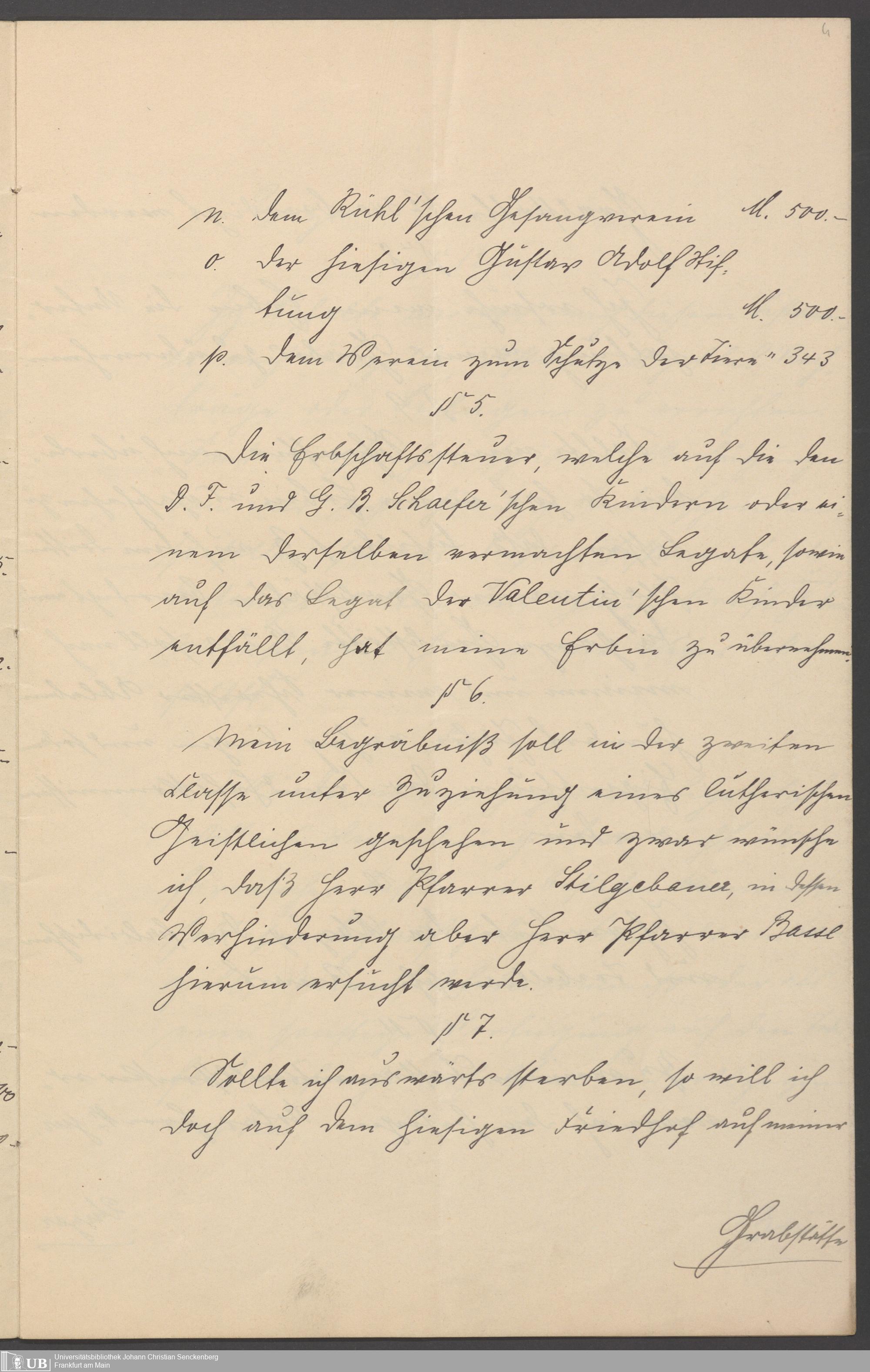 B 5 Dr. Senckenbergische Stiftung, 264 - Testament Gottlieb Ludwig Vogt
