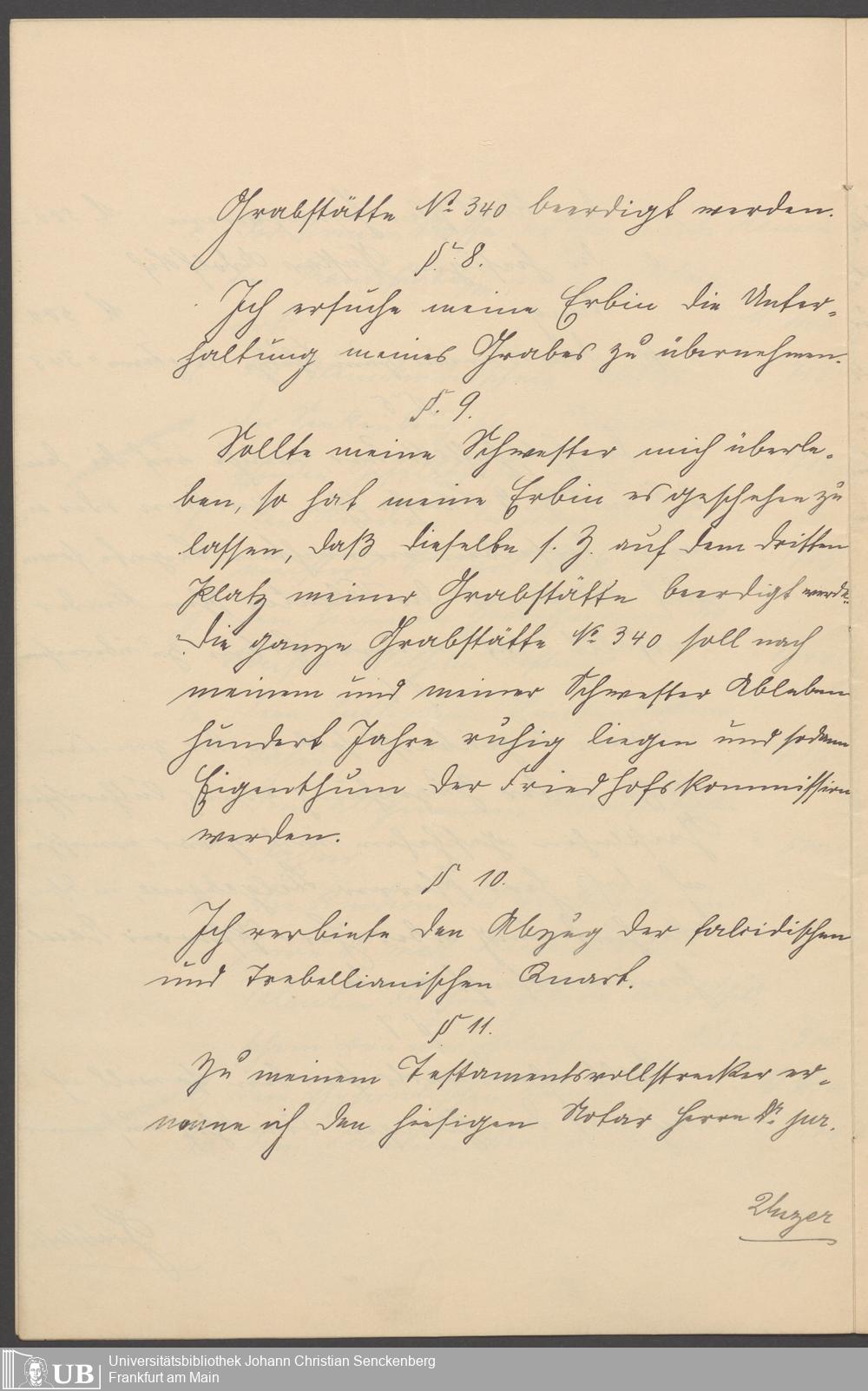 B 5 Dr. Senckenbergische Stiftung, 264 - Testament Gottlieb Ludwig Vogt