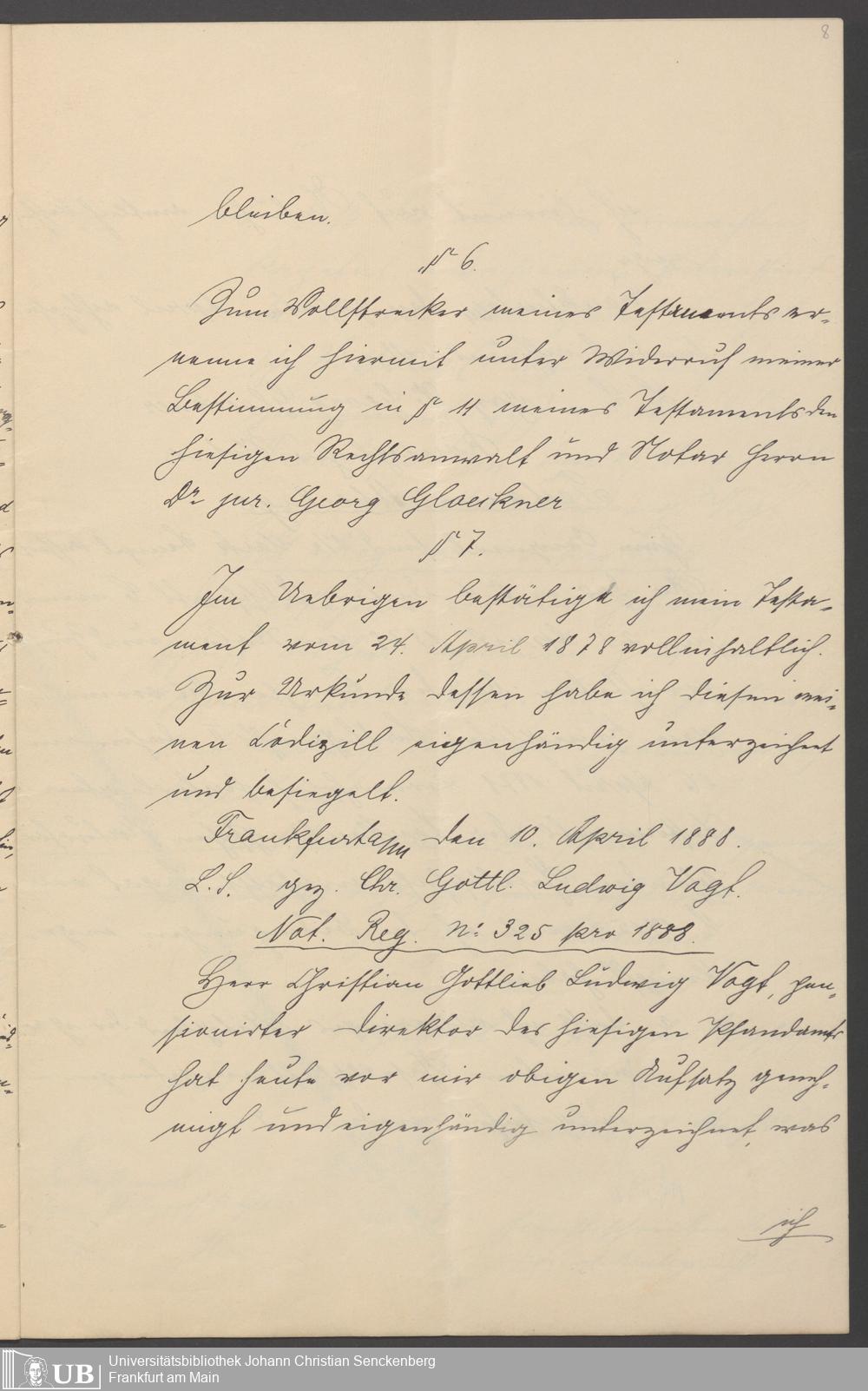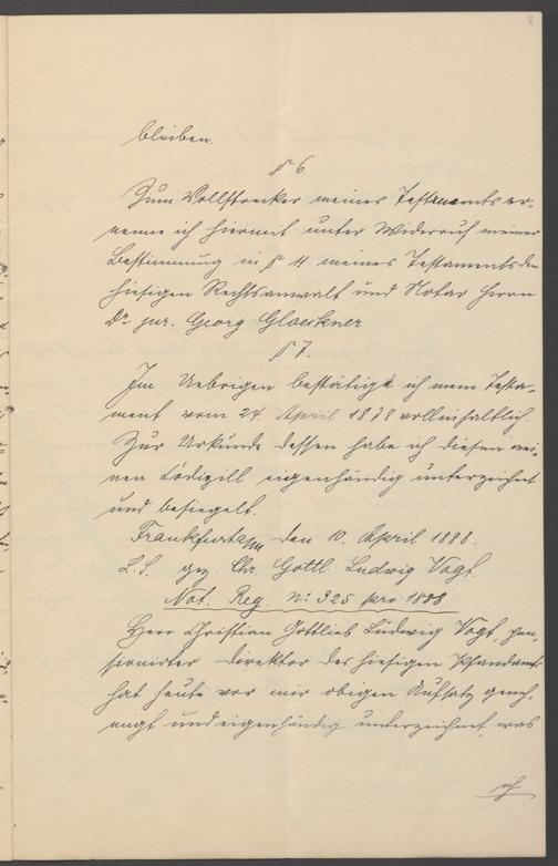 B 5 Dr. Senckenbergische Stiftung, 264 - Testament Gottlieb Ludwig Vogt