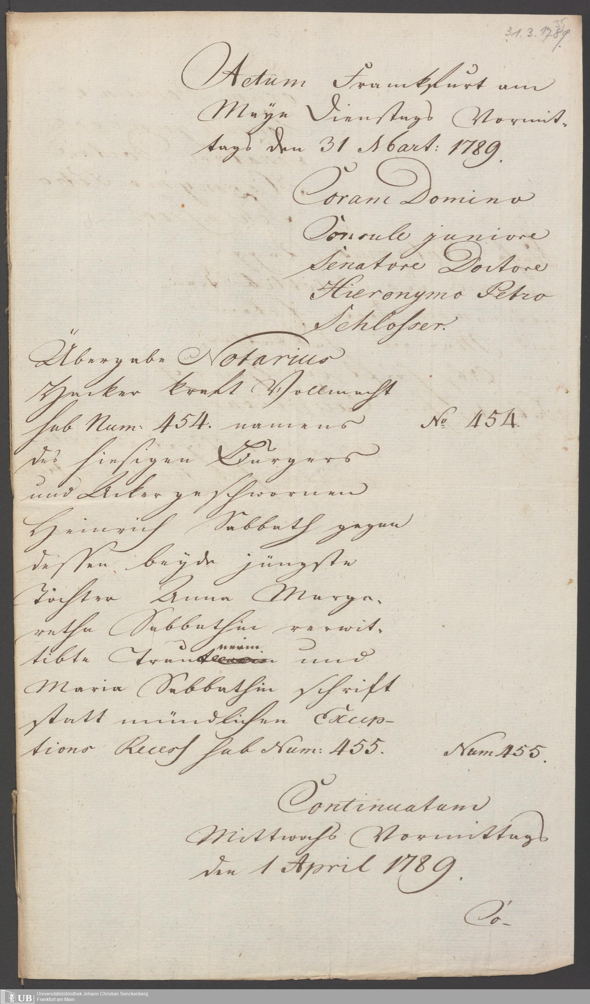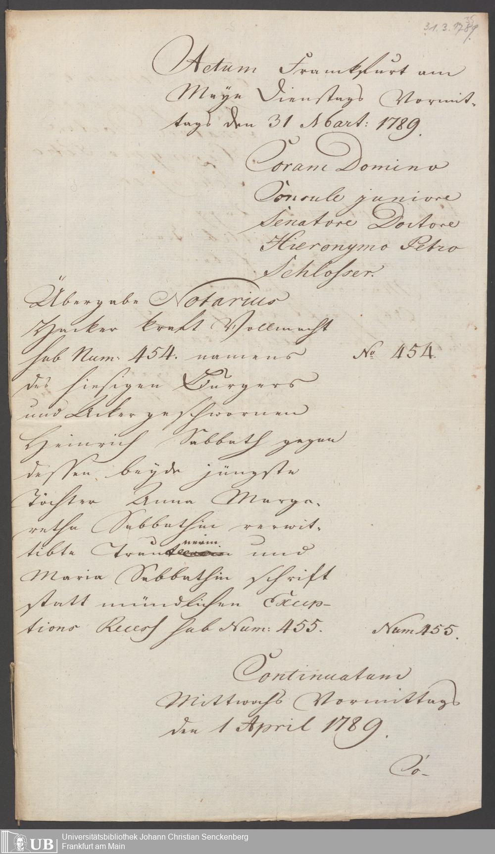 Nachlass Johann Christian Senckenberg