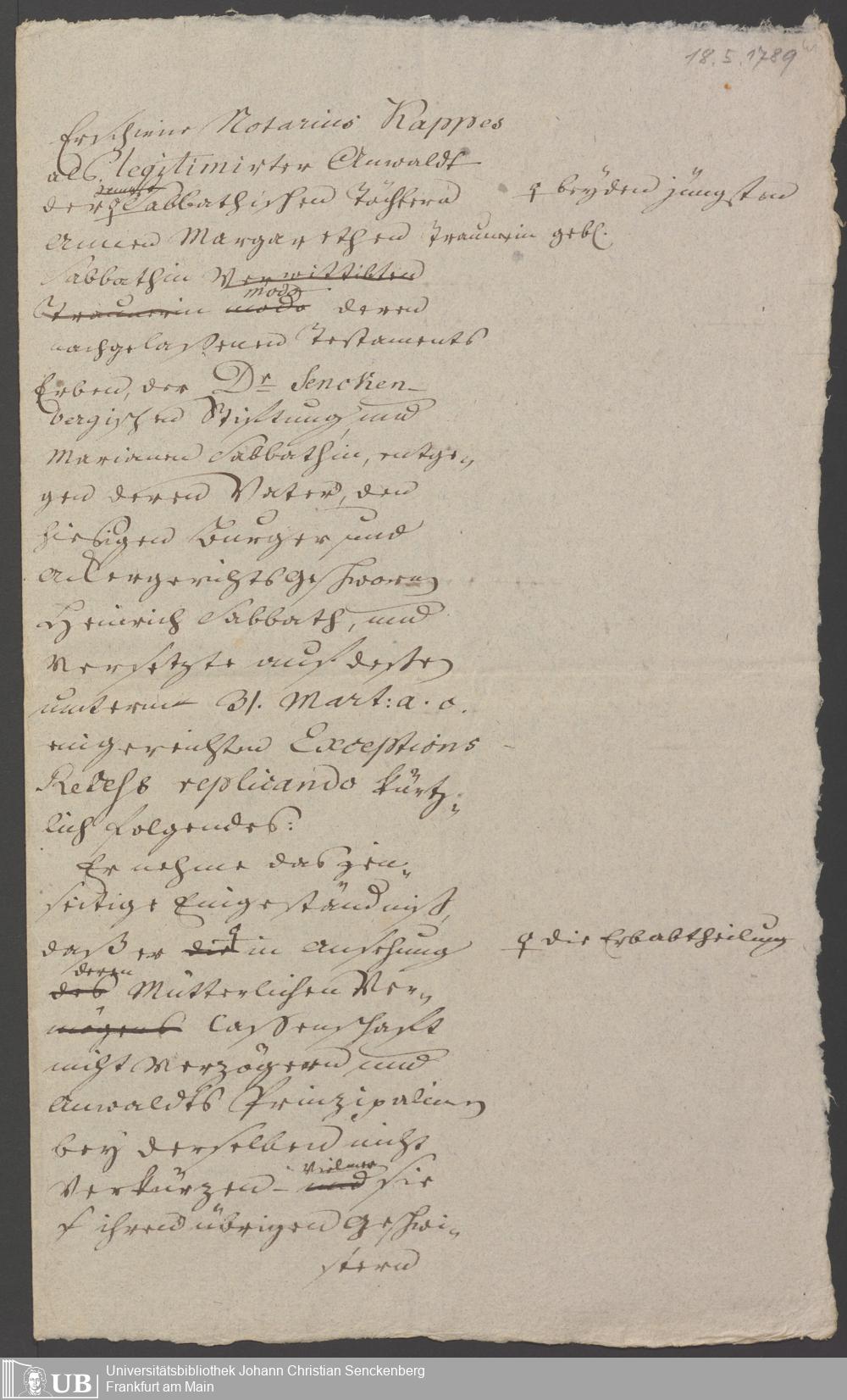 B 5 Dr. Senckenbergische Stiftung, 265 - Prozessakten Sabbath