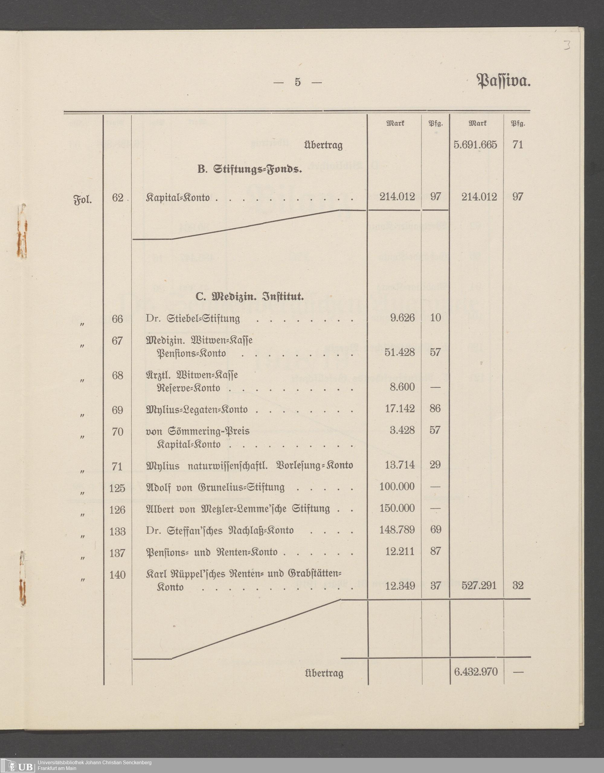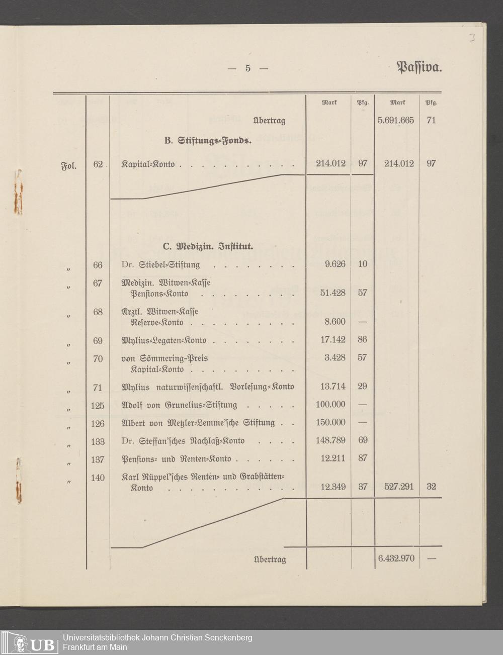 B 5 Dr. Senckenbergische Stiftung, 266 - Bilanzen der Senckenbergischen Stiftung