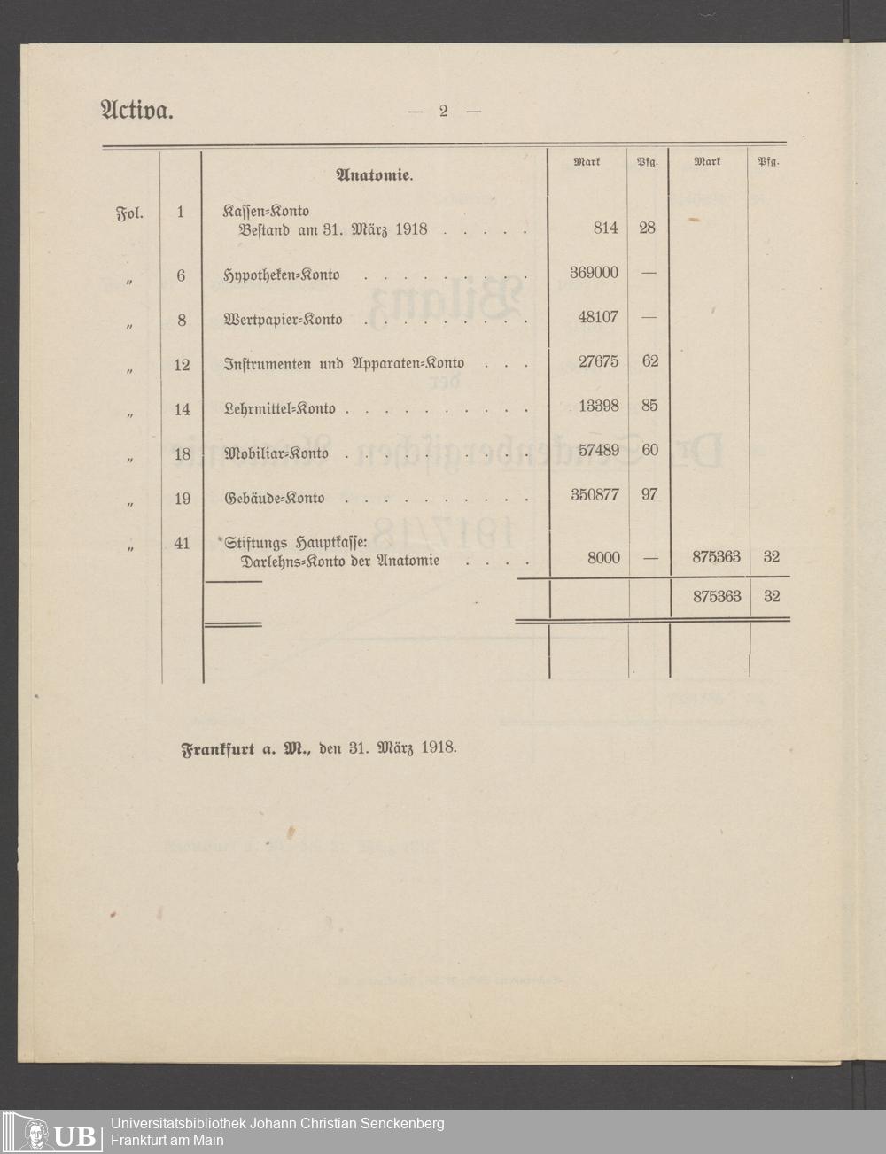 B 5 Dr. Senckenbergische Stiftung, 266 - Bilanzen der Senckenbergischen Stiftung