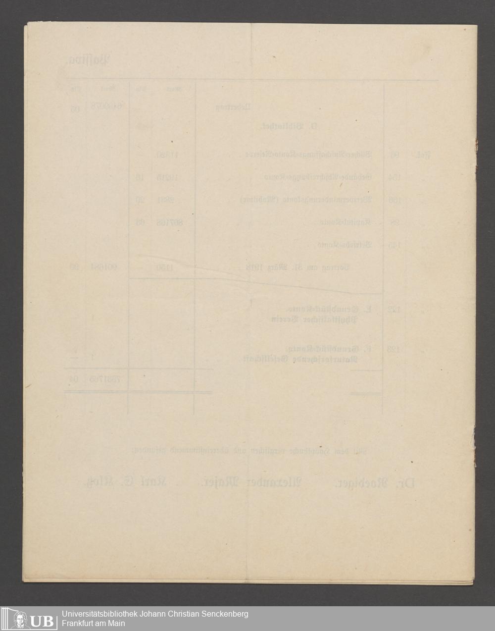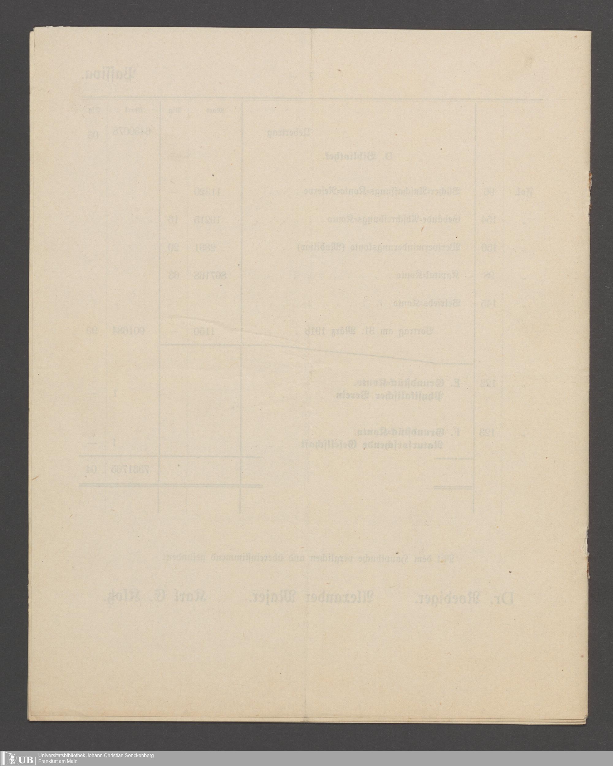 B 5 Dr. Senckenbergische Stiftung, 266 - Bilanzen der Senckenbergischen Stiftung