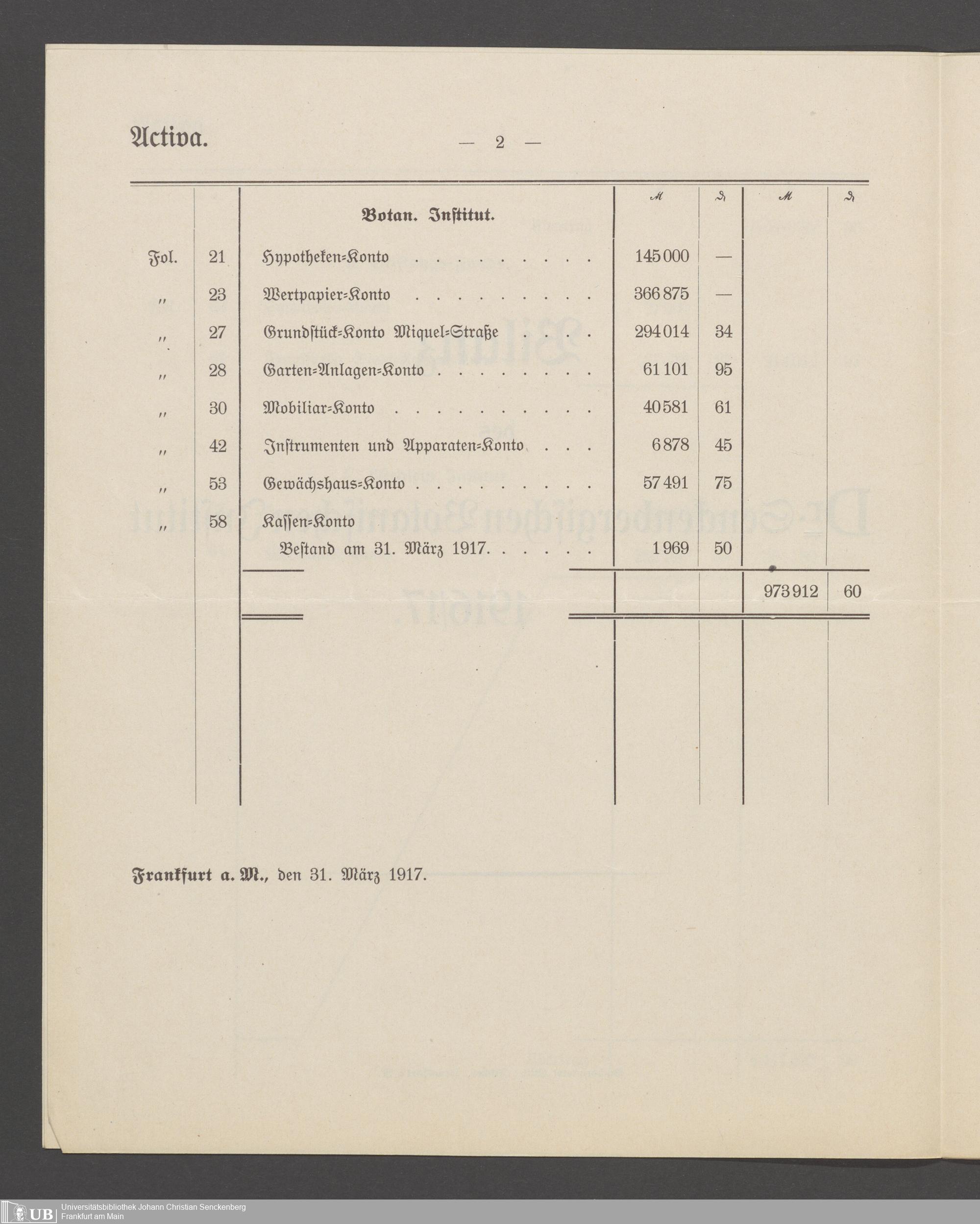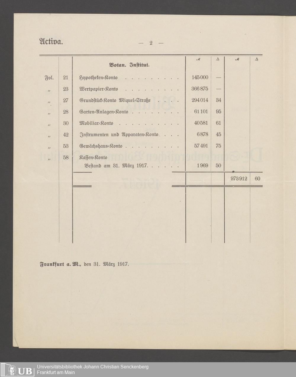 B 5 Dr. Senckenbergische Stiftung, 266 - Bilanzen der Senckenbergischen Stiftung