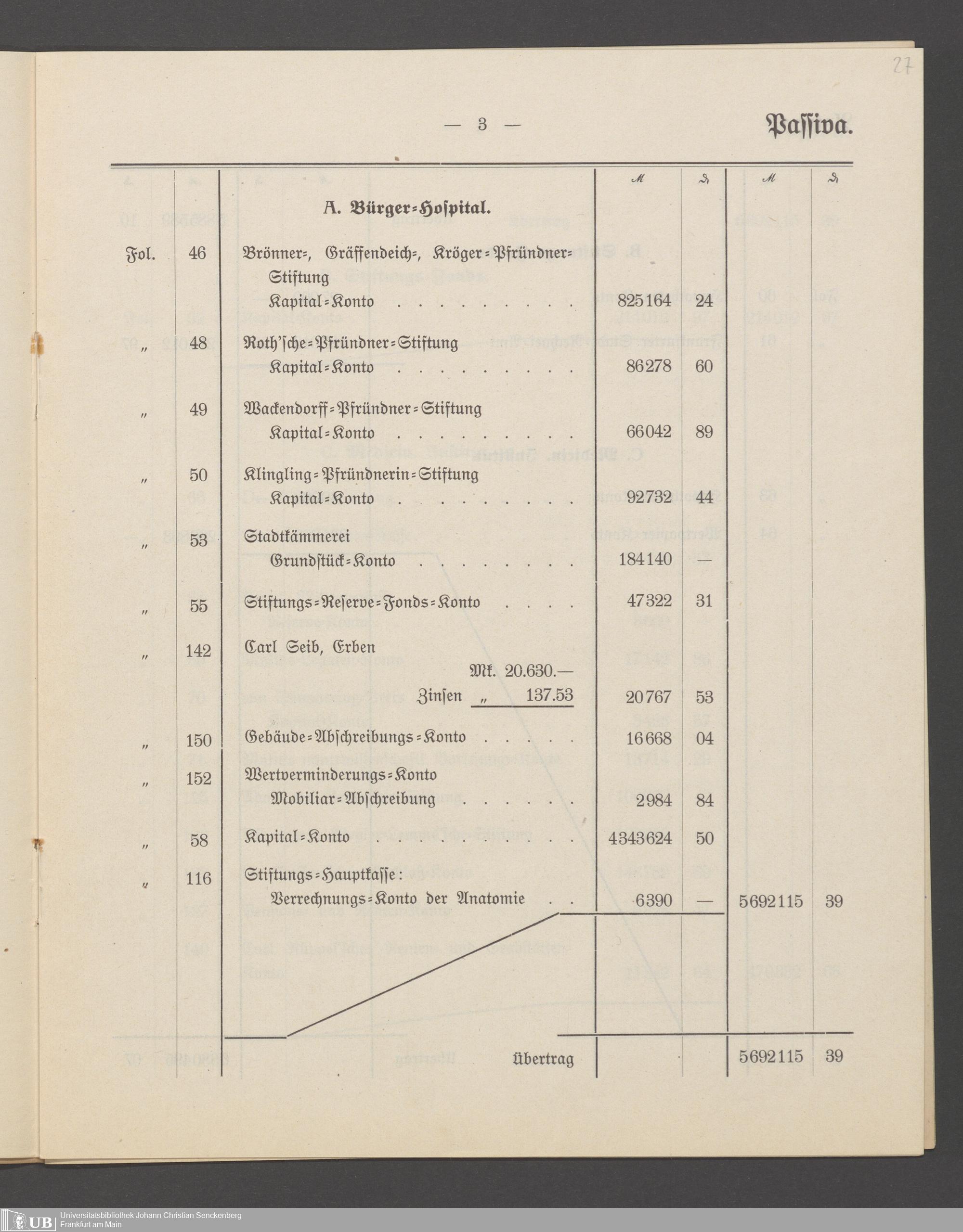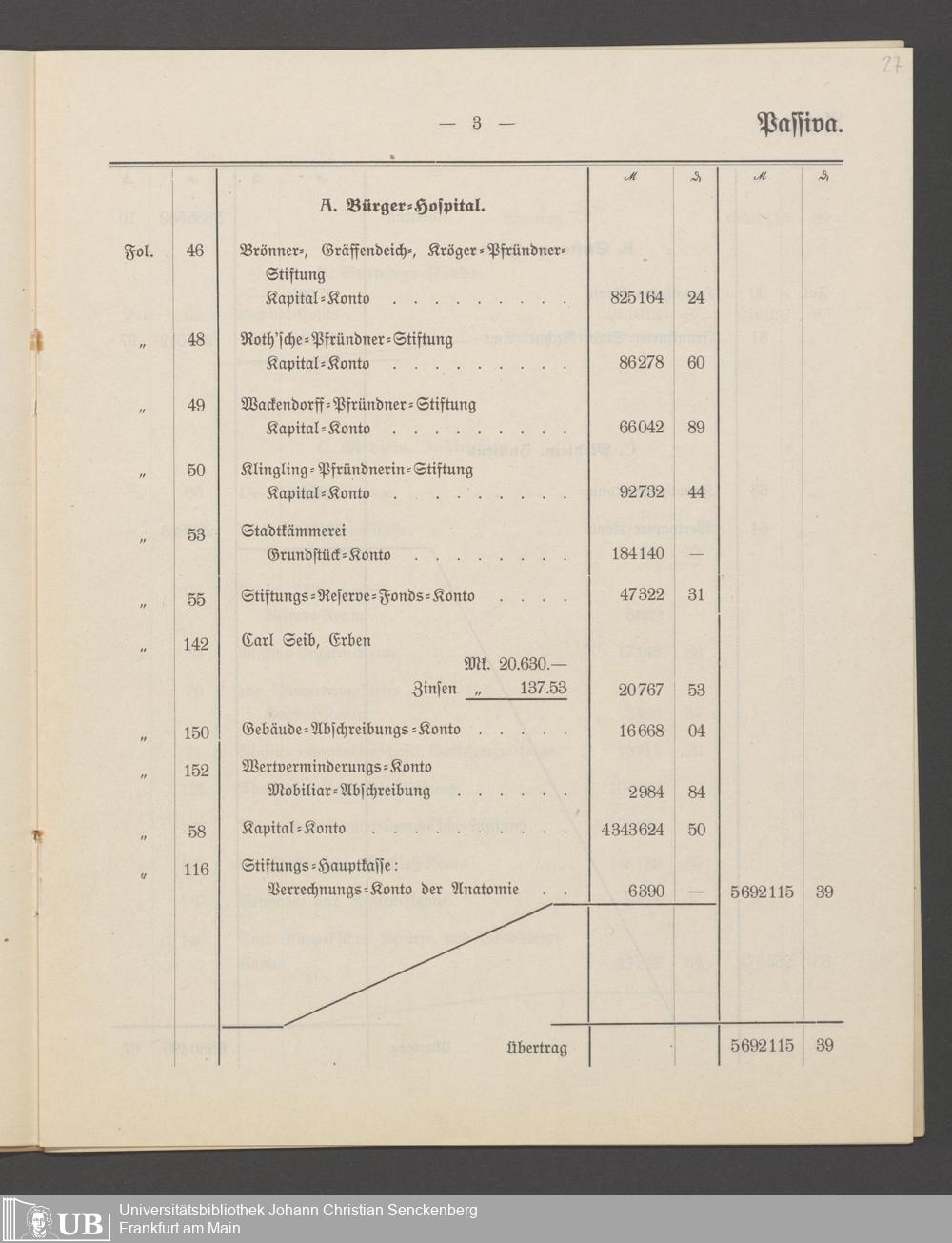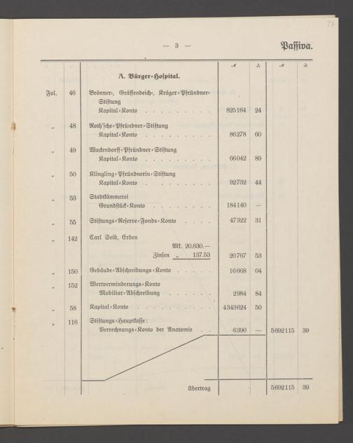 B 5 Dr. Senckenbergische Stiftung, 266 - Bilanzen der Senckenbergischen Stiftung