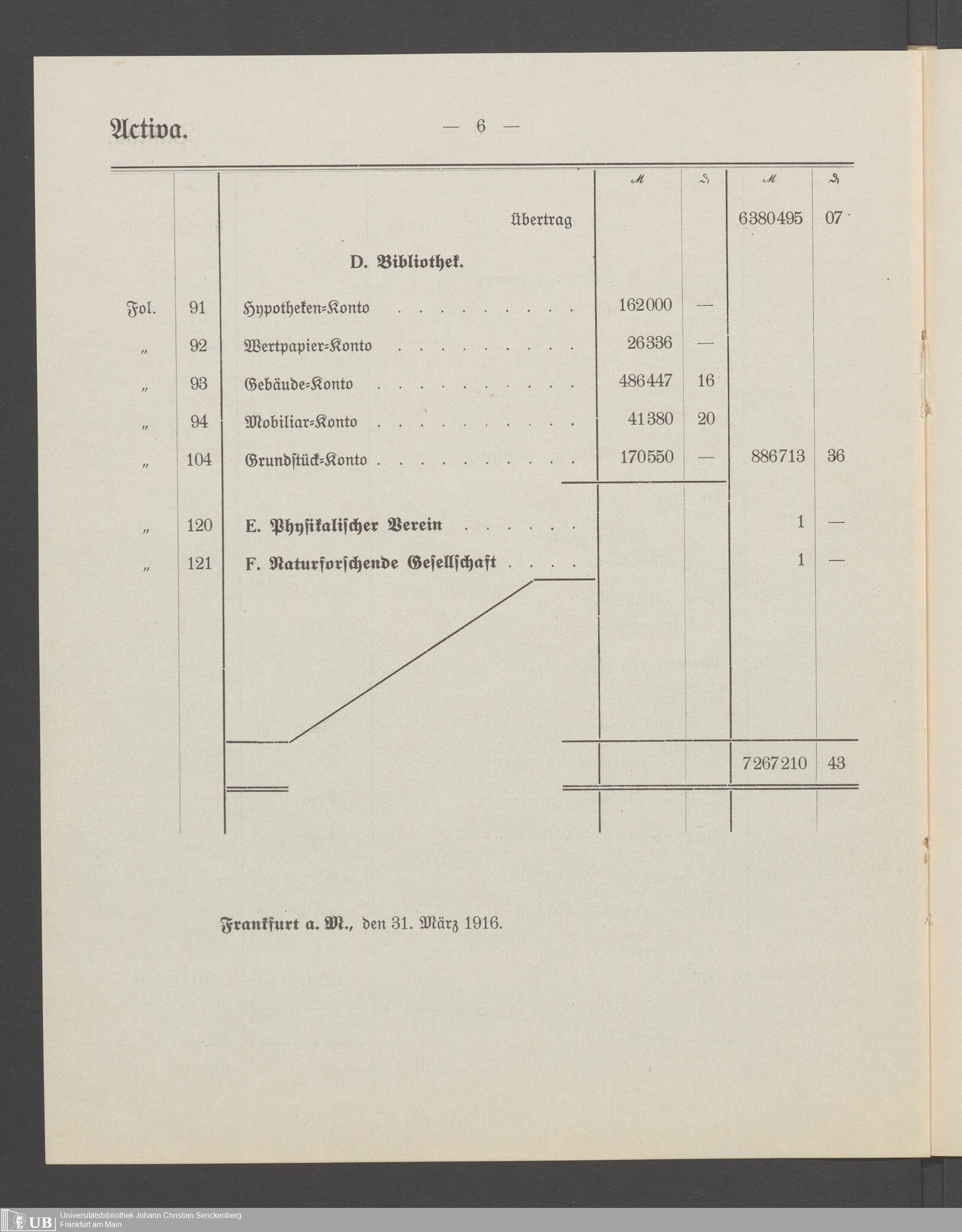 B 5 Dr. Senckenbergische Stiftung, 266 - Bilanzen der Senckenbergischen Stiftung