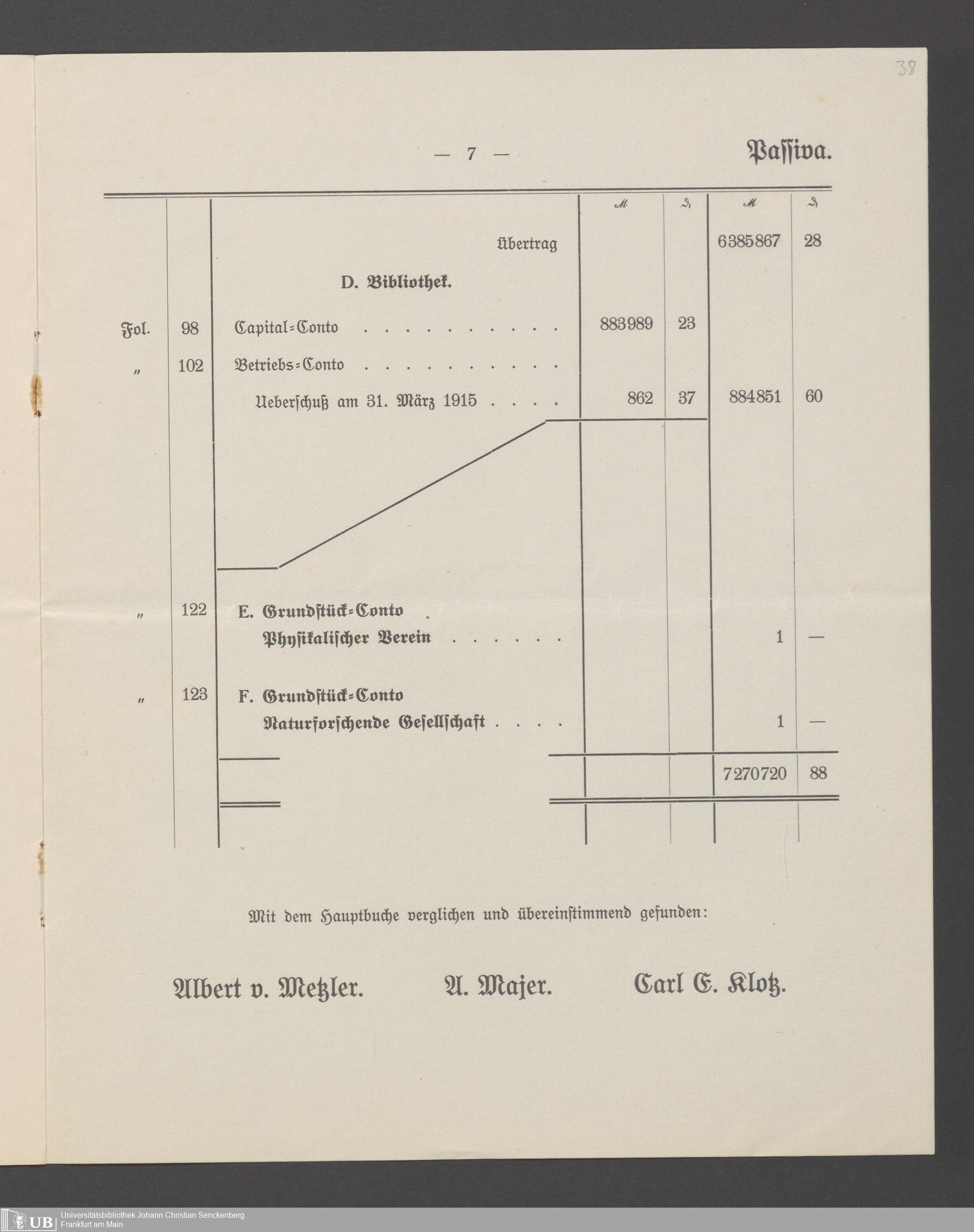B 5 Dr. Senckenbergische Stiftung, 266 - Bilanzen der Senckenbergischen Stiftung