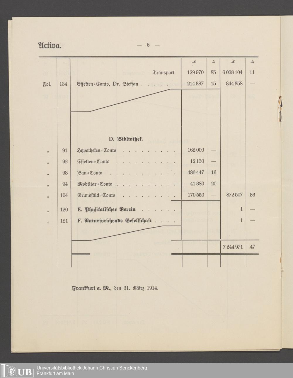 B 5 Dr. Senckenbergische Stiftung, 266 - Bilanzen der Senckenbergischen Stiftung
